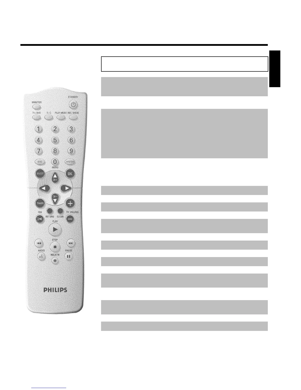 TV/DVD TV/DVD switch: Switches the scart socket EXT 2 AUX-I/O directly