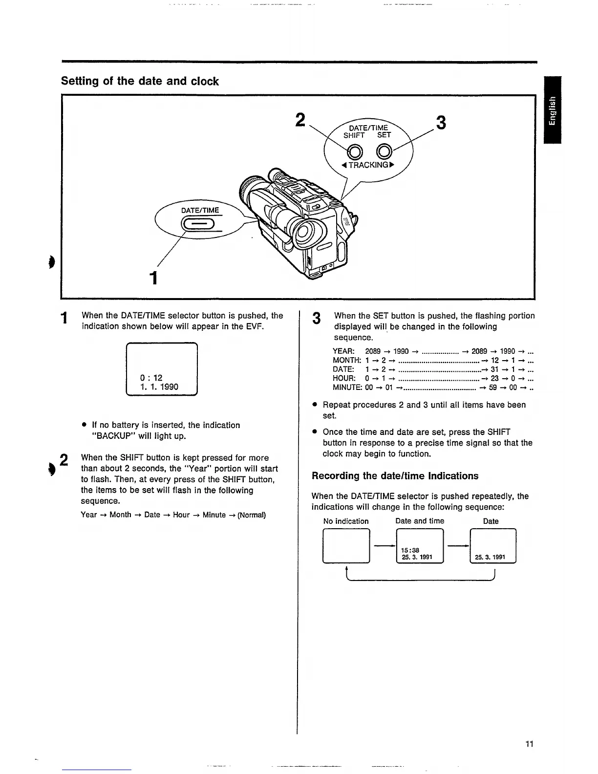 Philips VKR6853/21 - Date and Clock Setting Procedure; Setting Date and Time Values; Date;Time Indication Modes
