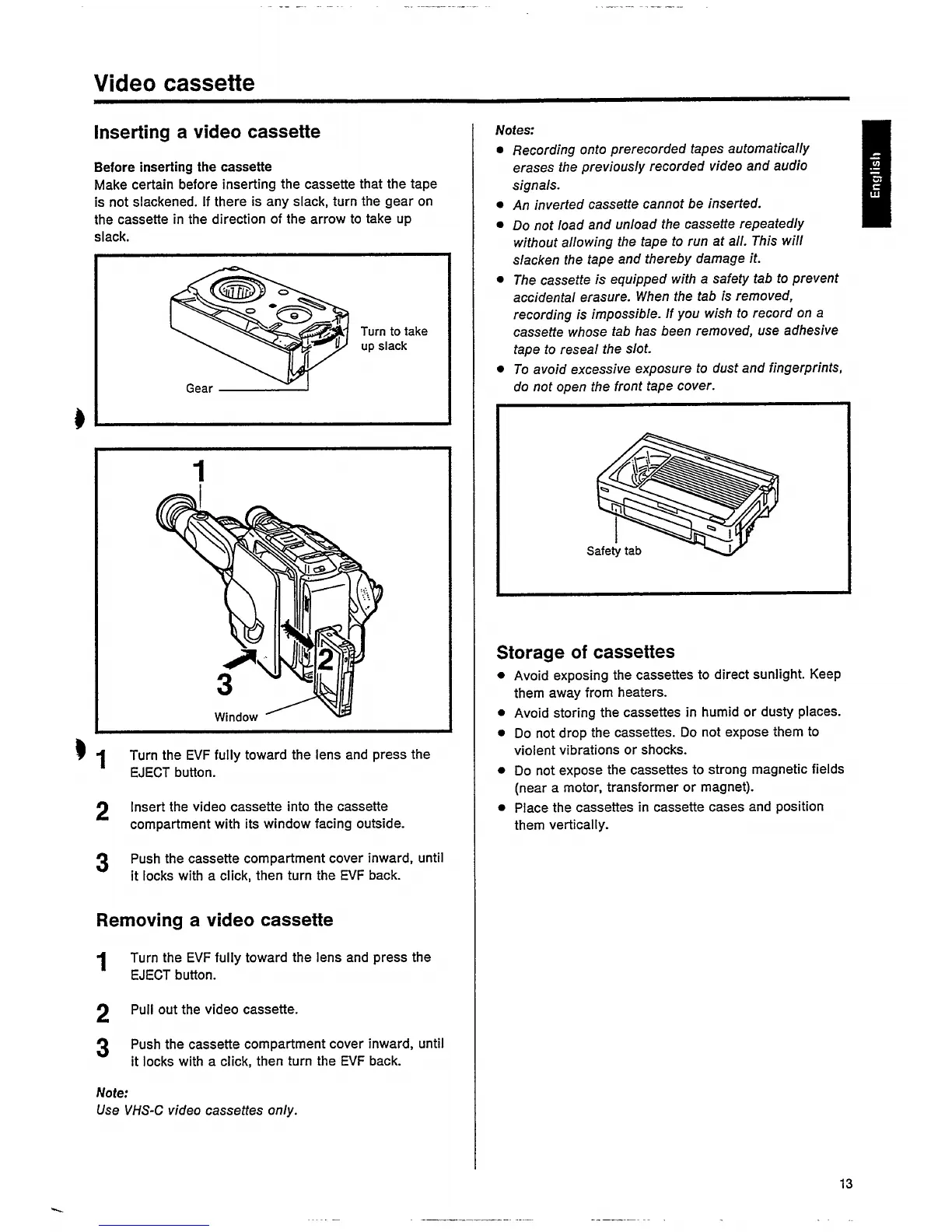 Philips VKR6853/21 - Video Cassette Handling; Inserting a VHS-C Cassette; Cassette Storage Guidelines; Removing a VHS-C Cassette