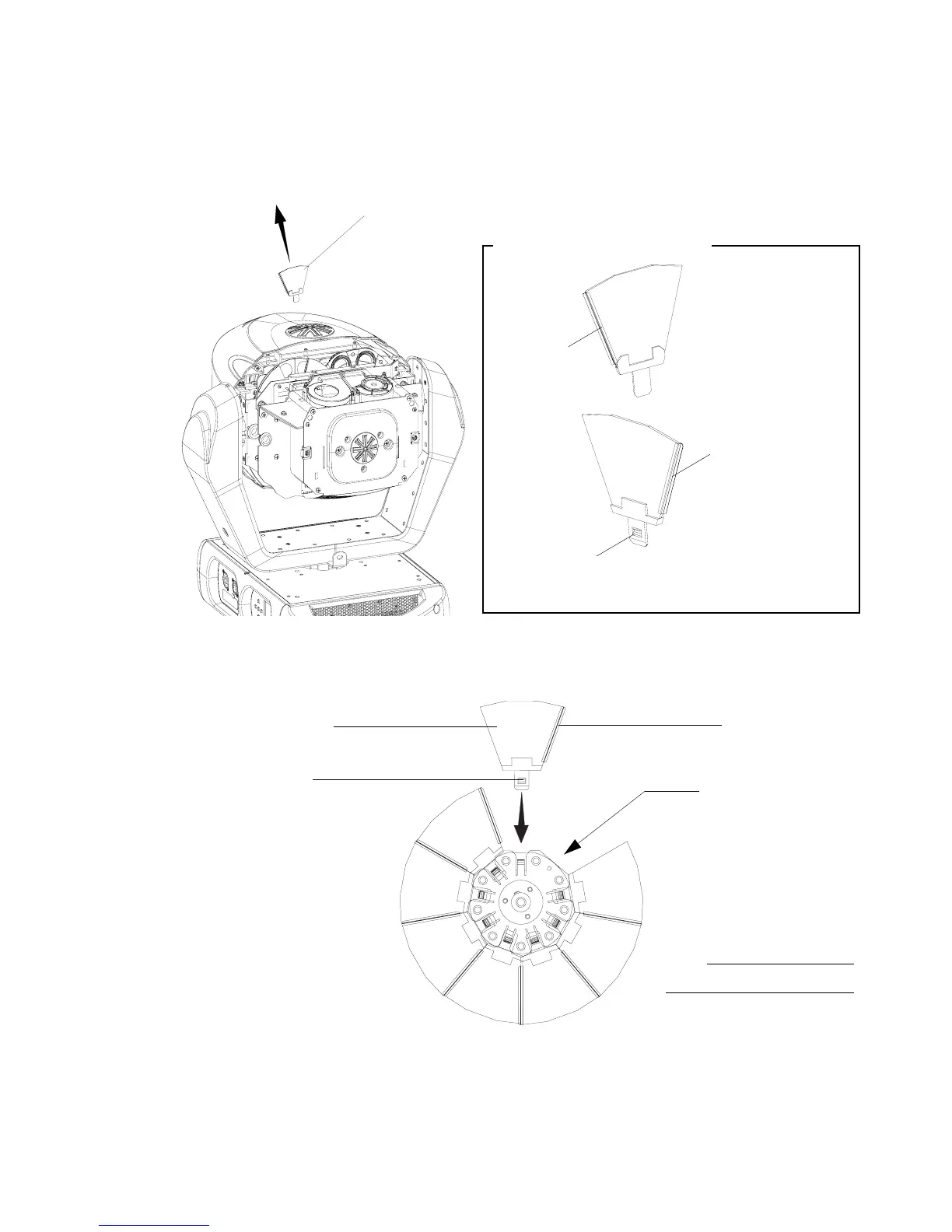 wheel. Note orientation of fixed color filter. New color filter must go in exactly the same.