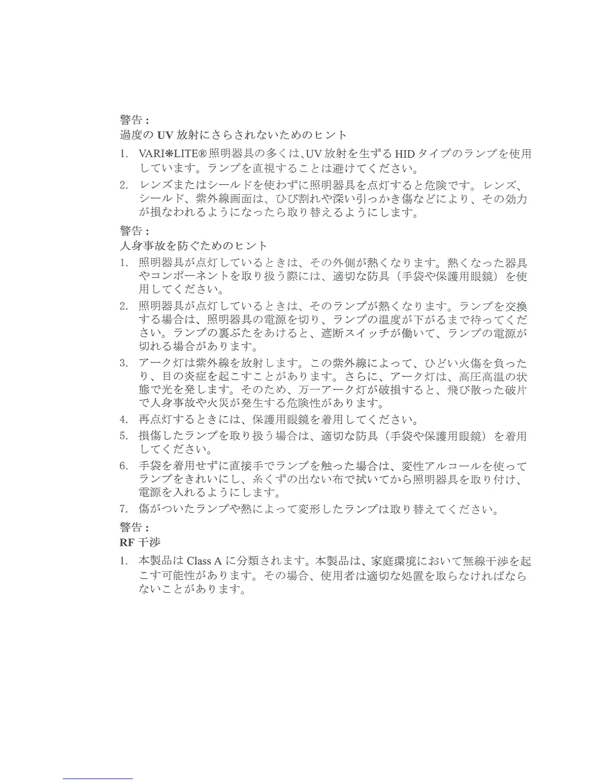 VARILITE - VL440 / VL770 / VL880 LUMINAIRE USERS MANUAL