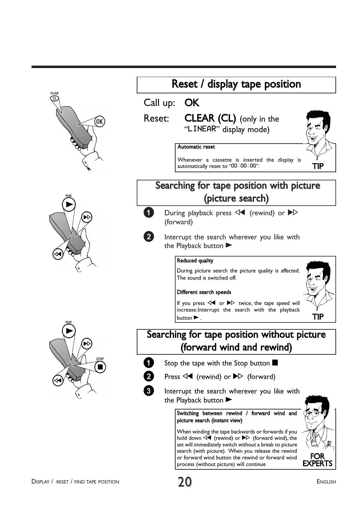 DISPLAY / RESET / FIND TAPE POSITION ENGLISH