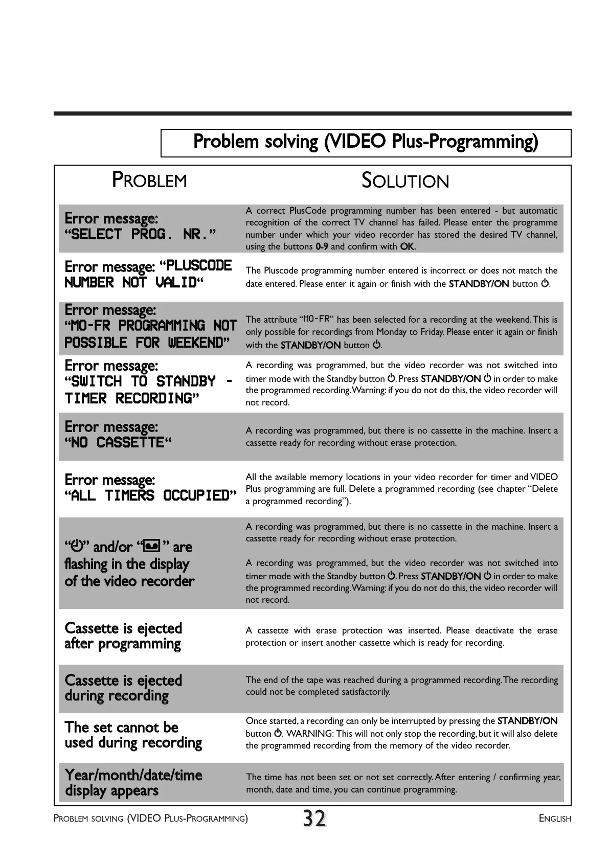 Plus programming are full. Delete a programmed recording (see chapter Delete