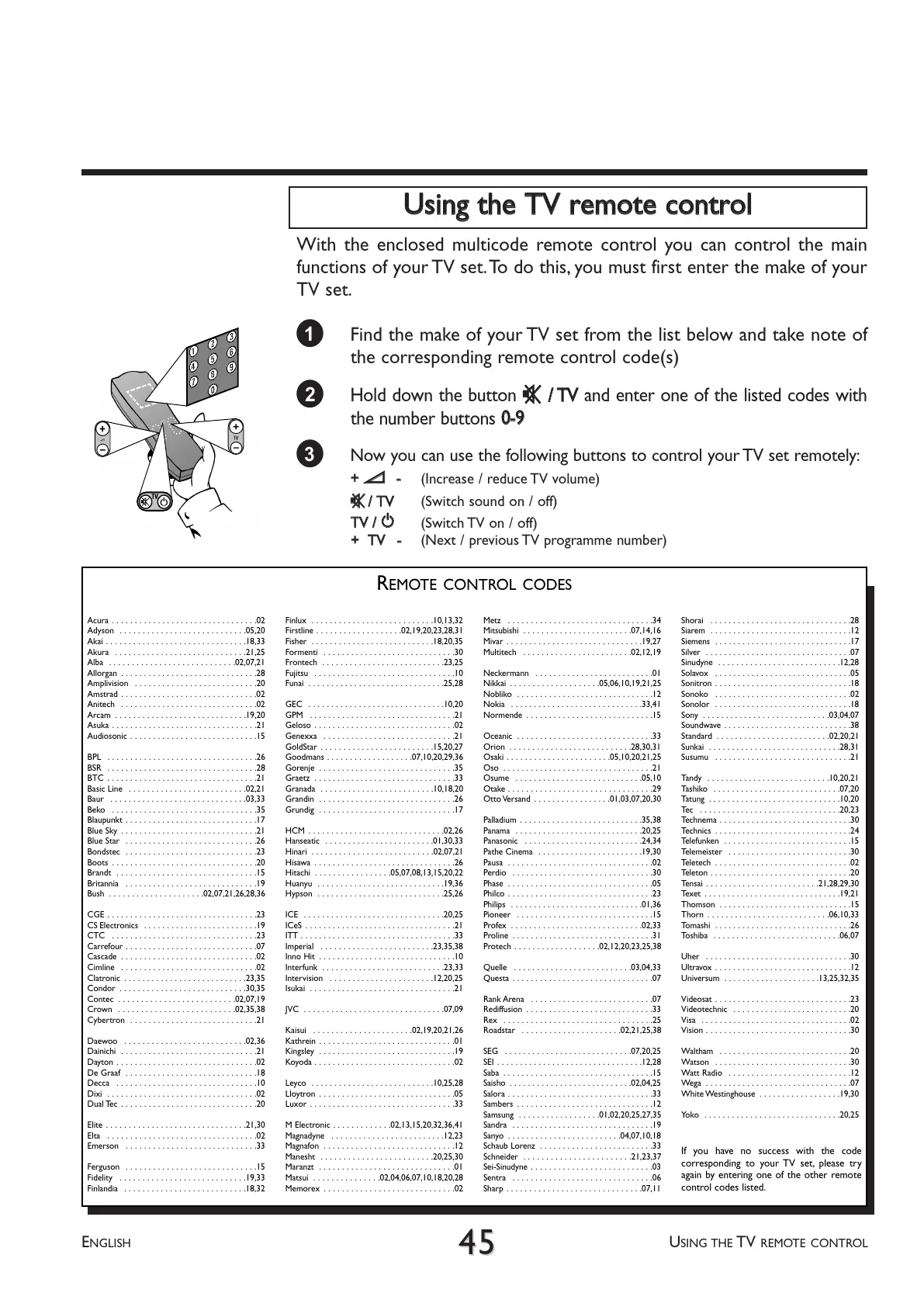 1 Find the make of your TV set from the list below and take note of