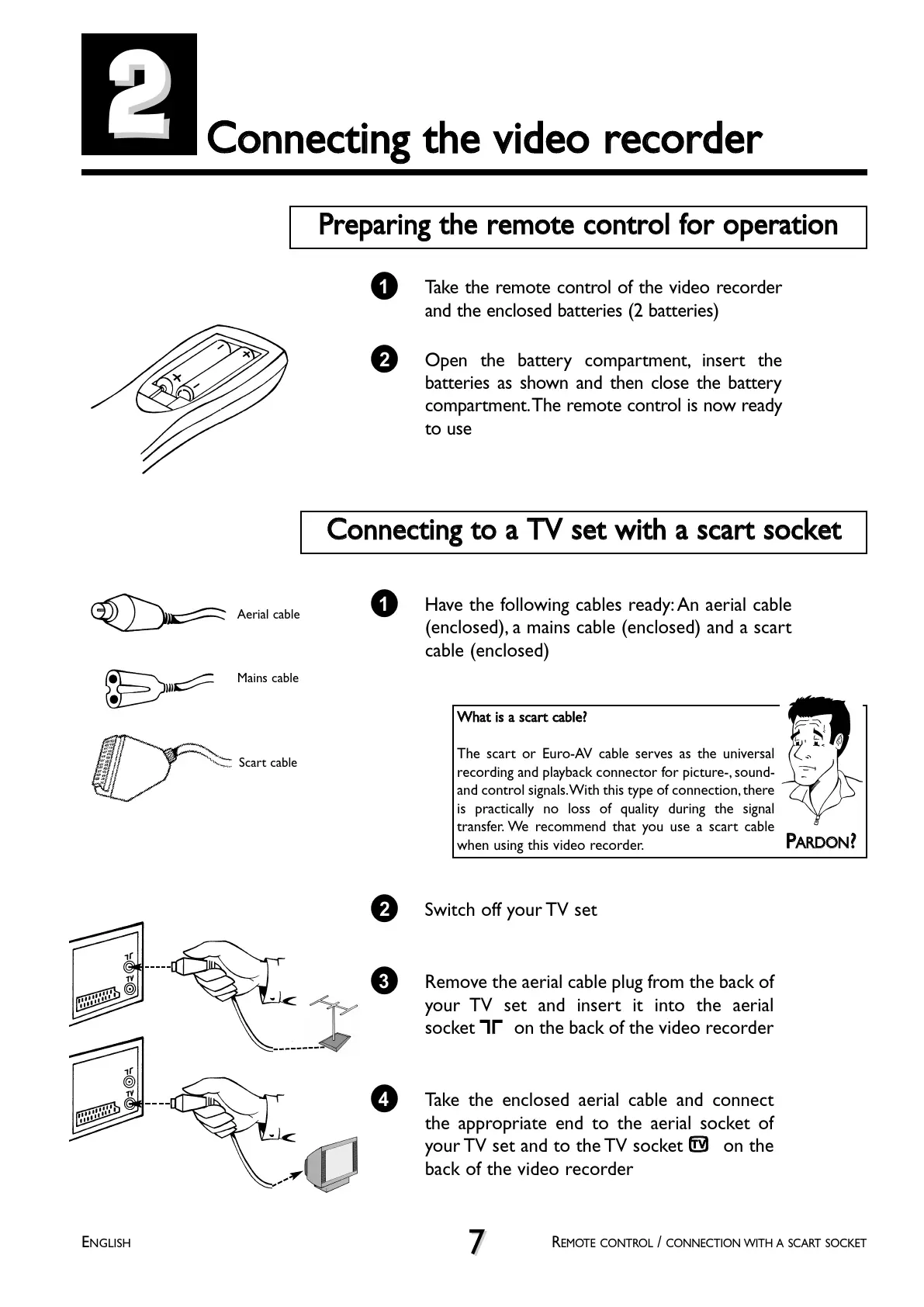 (enclosed), a mains cable (enclosed) and a scart