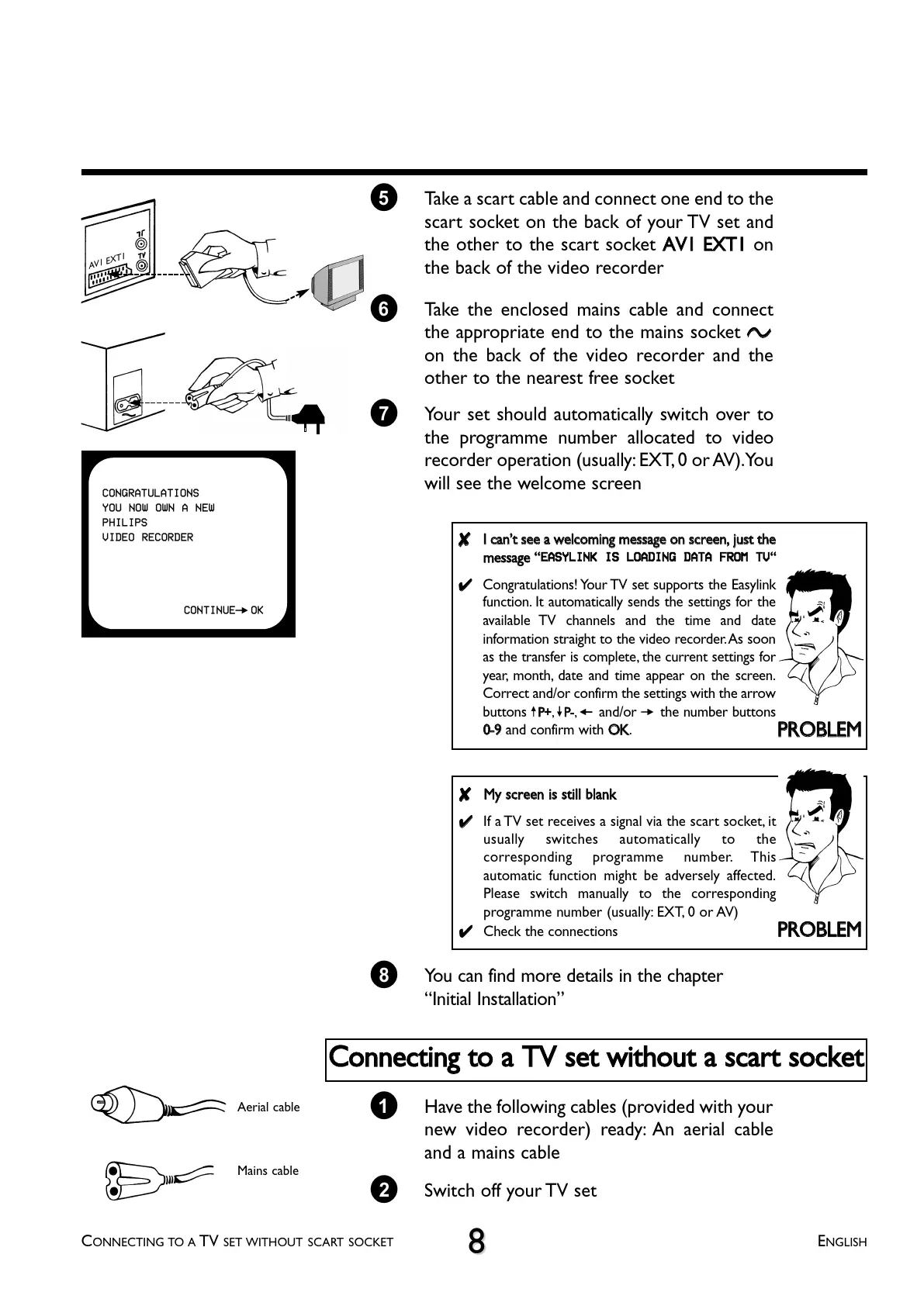 CONNECTING TO A TV SET WITHOUT SCART SOCKET ENGLISH