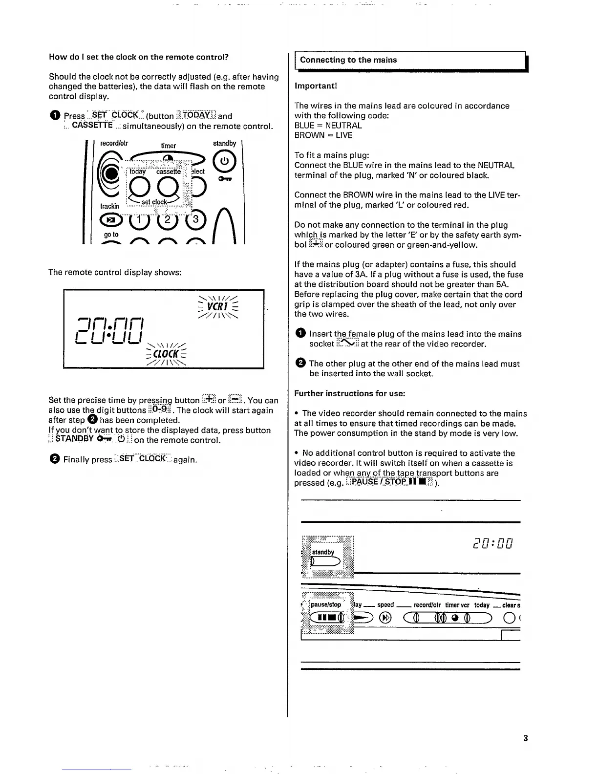 Philips VR 322 - Setting Up Clock and Power Connections; Connecting to the Mains Power