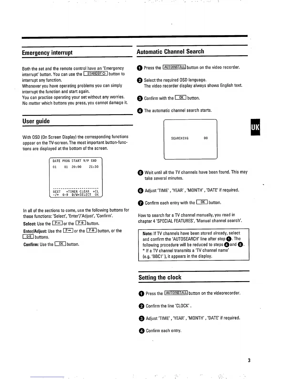 Philips VR 475 - Automatic Channel Search; Setting the Clock