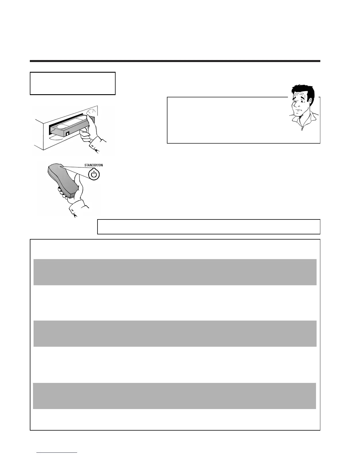 A recording was programmed, but there is no cassette in the machine. Insert a