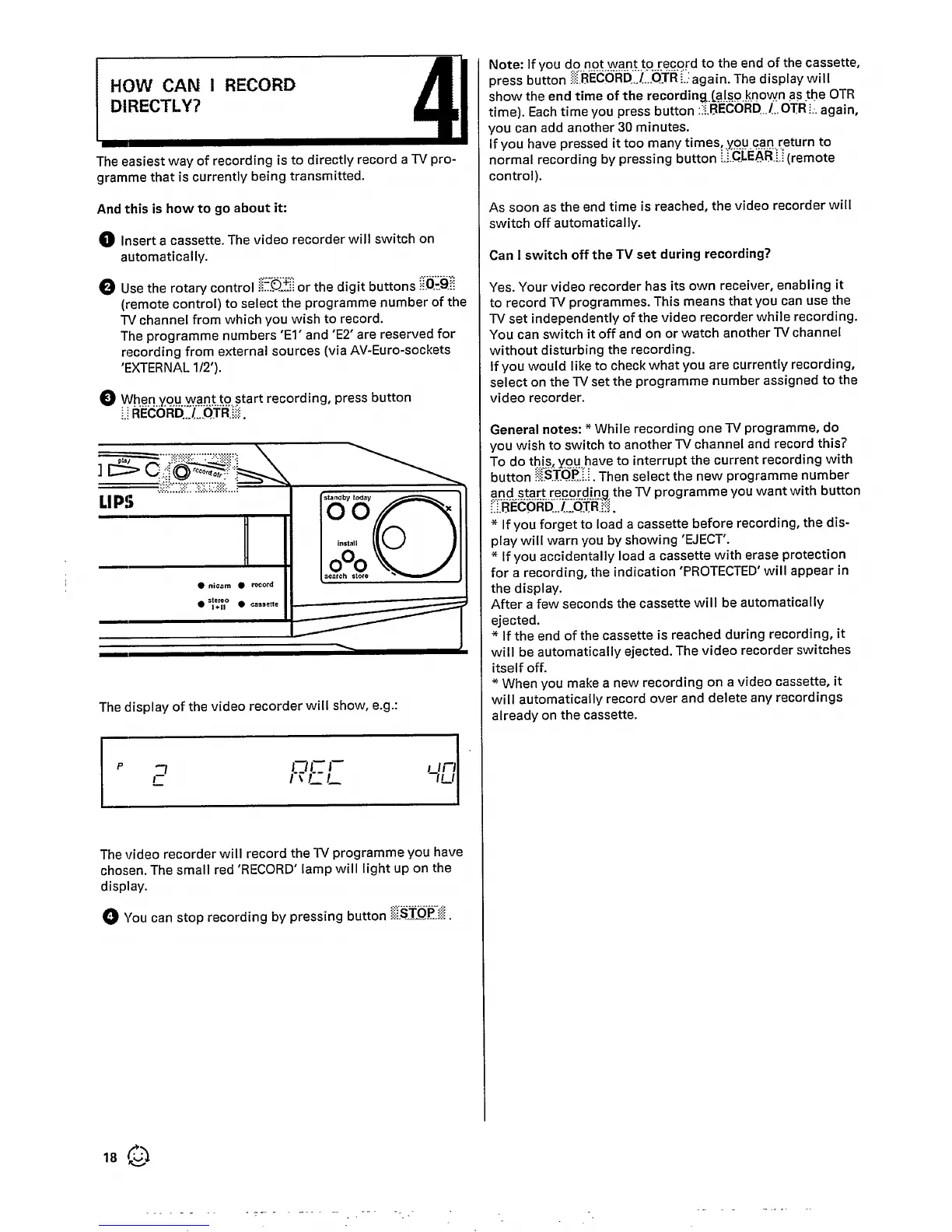 Philips VR 522 - HOW CAN I RECORD DIRECTLY?