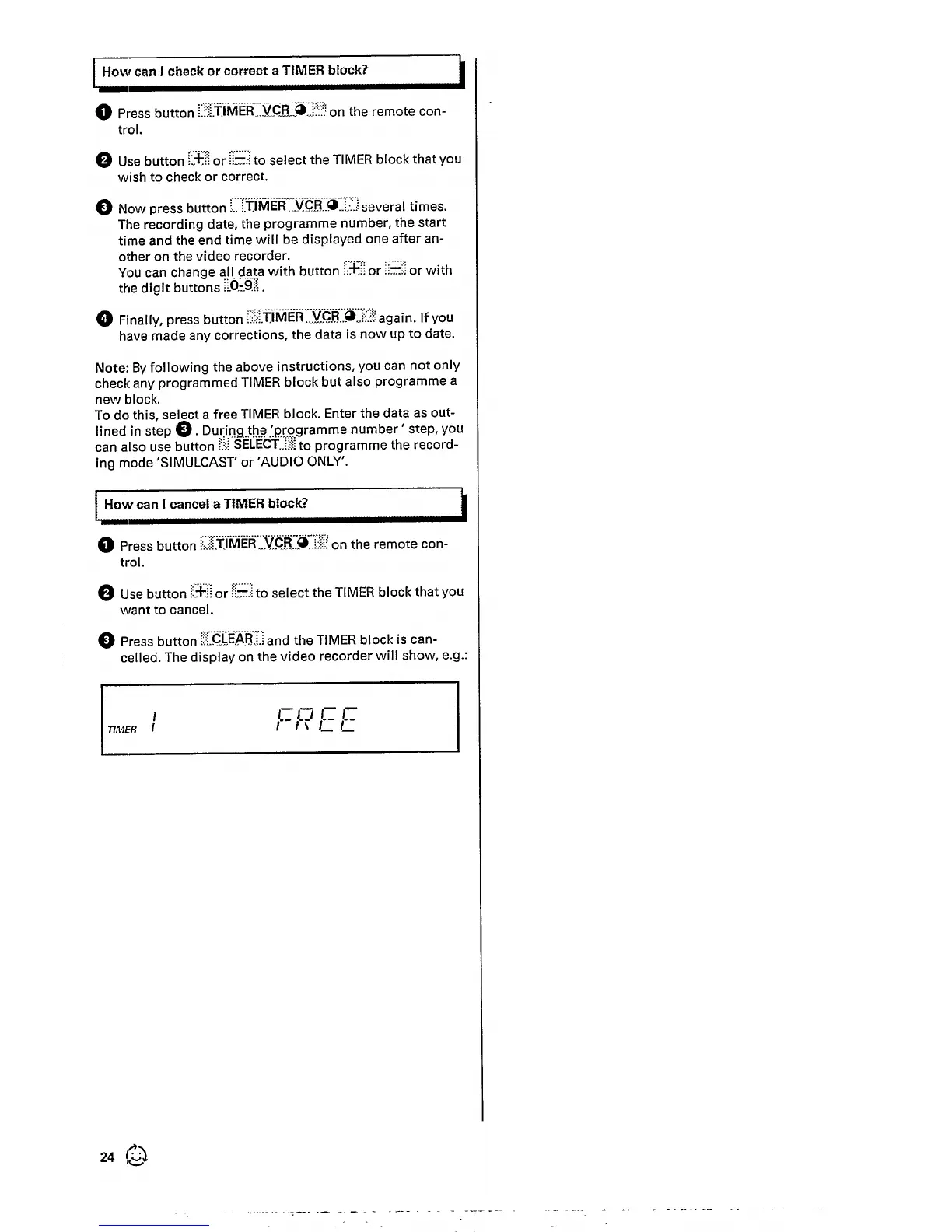 Philips VR 522 - How can I check or correct a TIMER block?; How can I cancel a TIMER block?