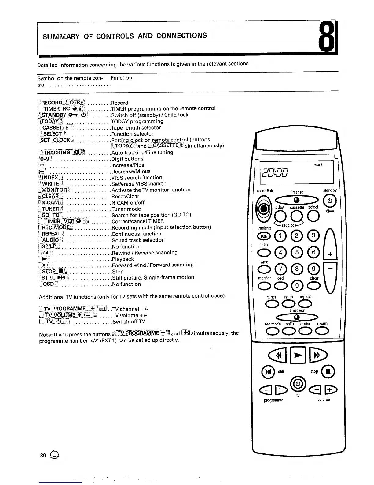 Philips VR 522 - SUMMARY OF CONTROLS AND CONNECTIONS