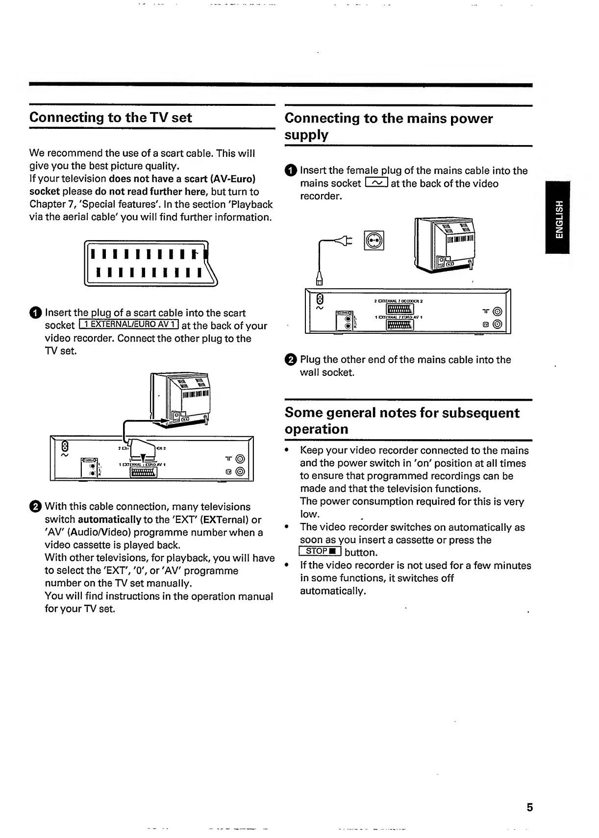 Philips VR 665 - Connecting to Your Television; Connecting to the Mains Power