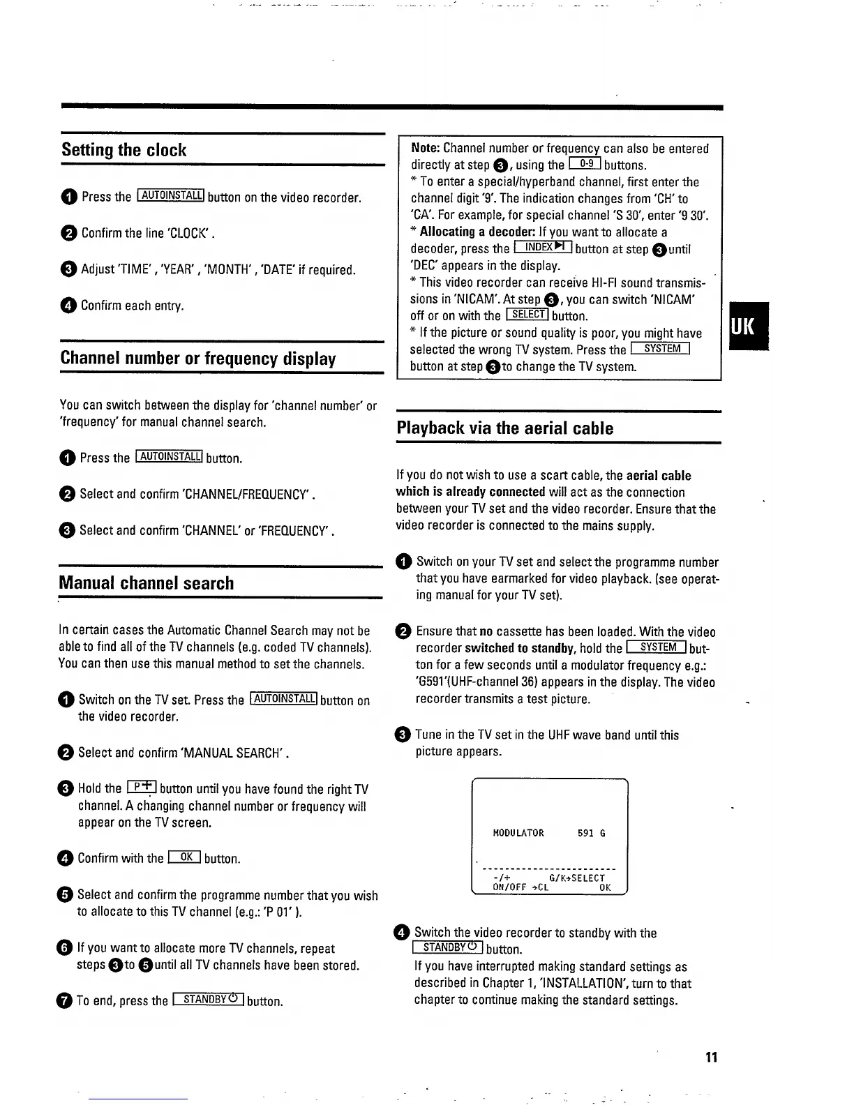 Philips VR 675 - Setting the Clock; Manual Channel Search; Playback via Aerial Cable