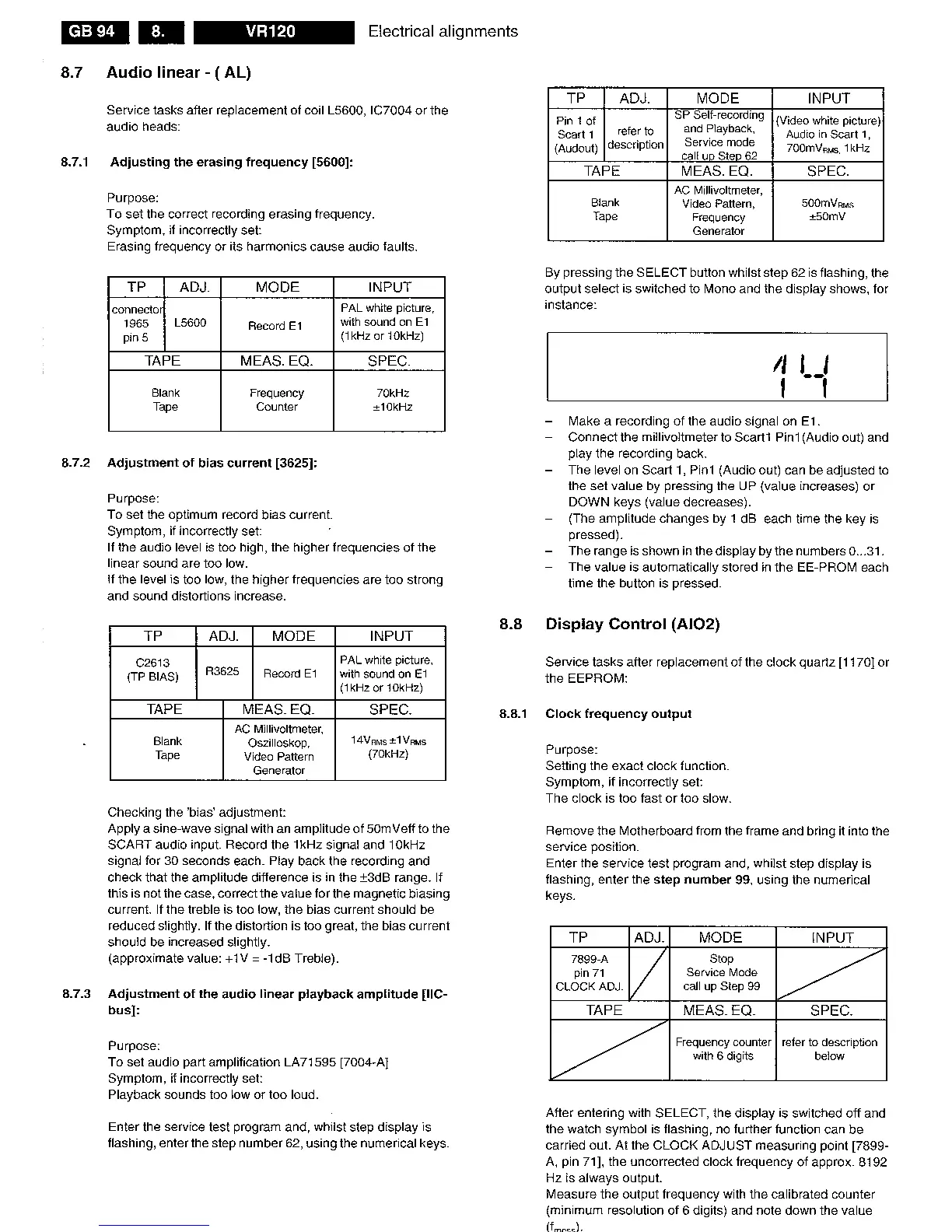 Philips VR120/-2 - Adjusting the Erasing Frequency; Adjustment of Bias Current; Adjustment of the Audio Linear Playback Amplitude