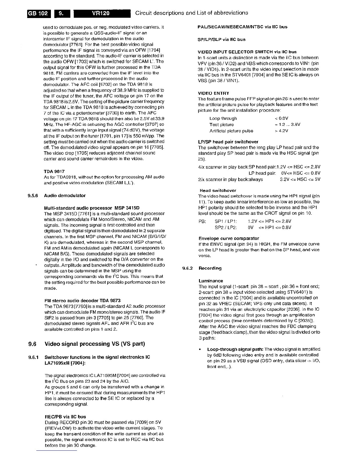 Philips VR120/-2 - Video Signal Processing VS; Audio Demodulator; Switchover Functinos in the Signal Electronics IC