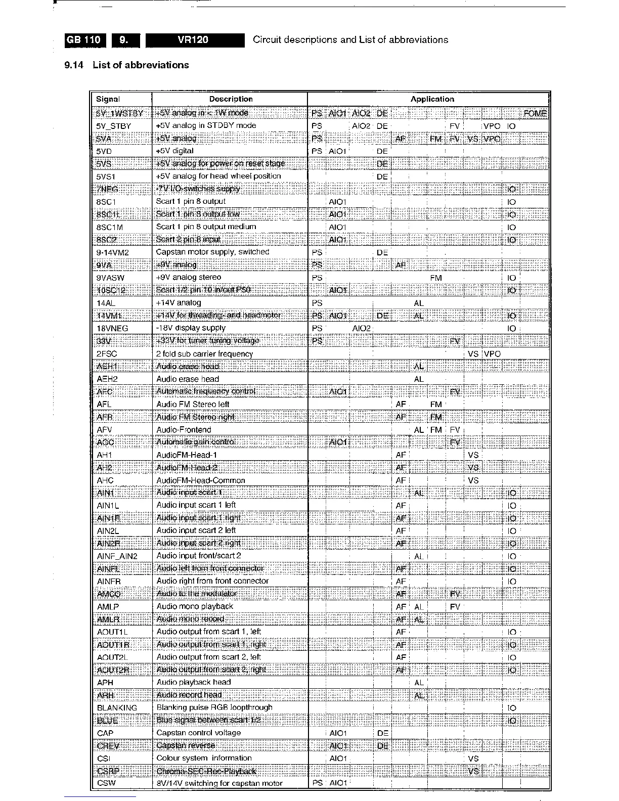 Philips VR120/-2 - List of Abbreviations