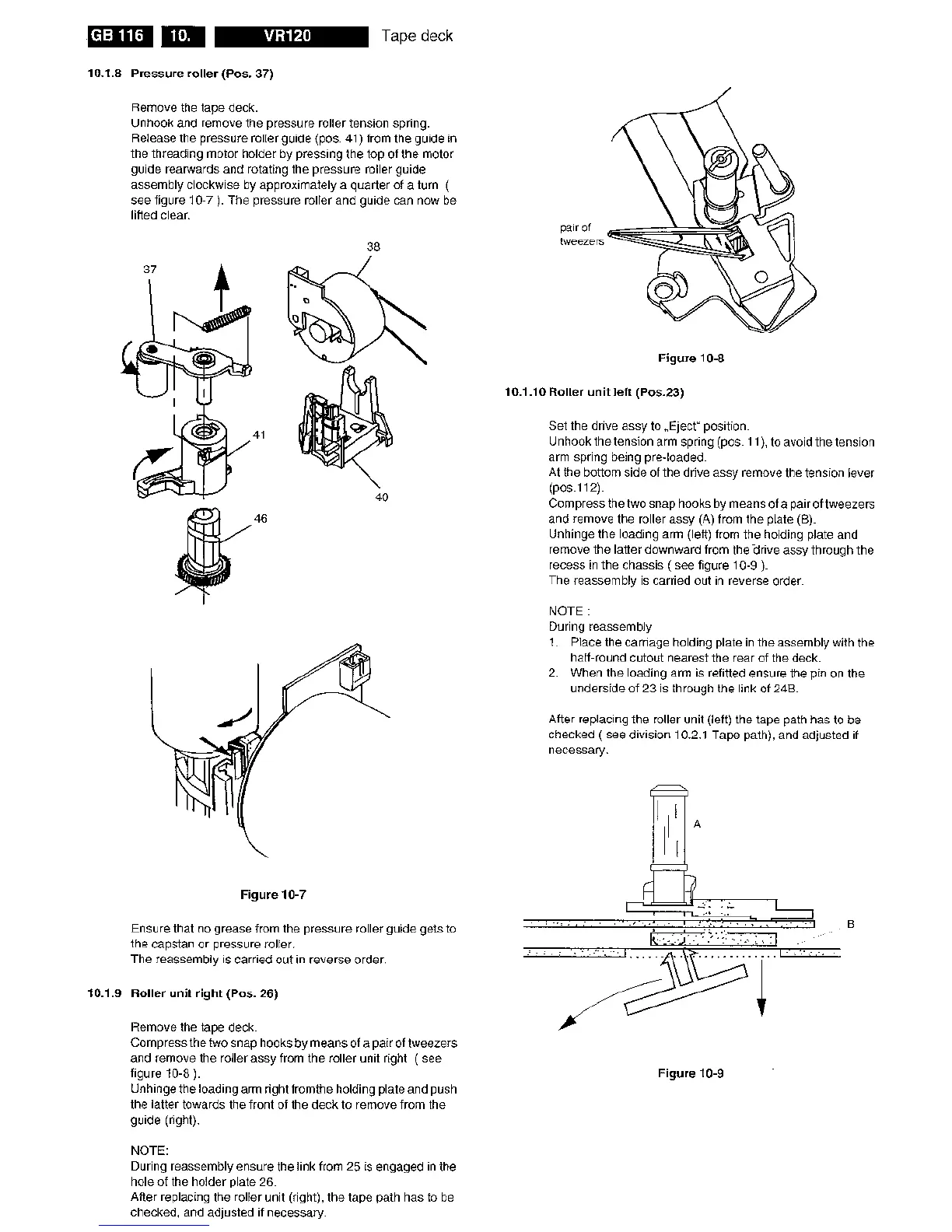 Philips VR120/-2 - Pressure Roller; Roller Unit Right; Roller Unit Left