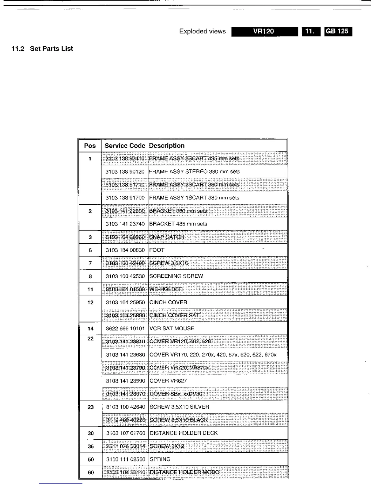 Philips VR120/-2 - Set Parts List