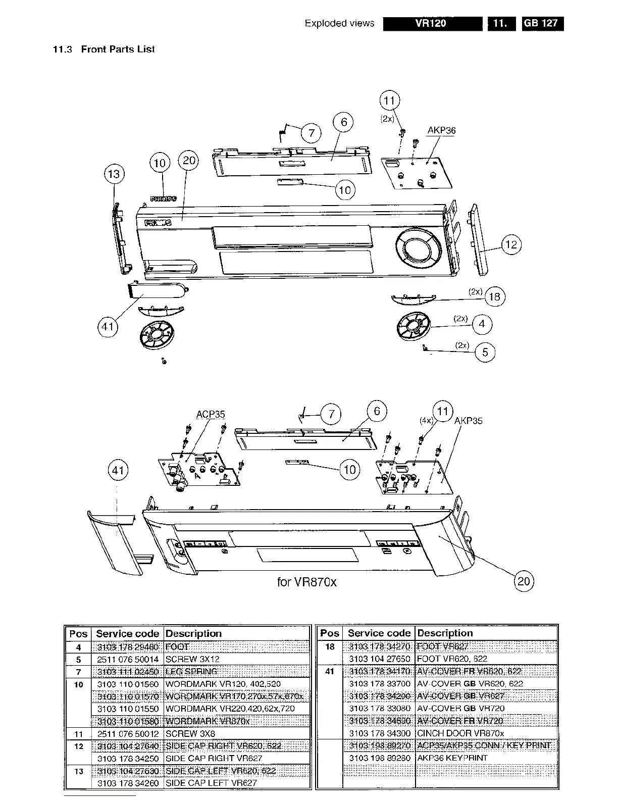 Philips VR120/-2 - Front Parts List