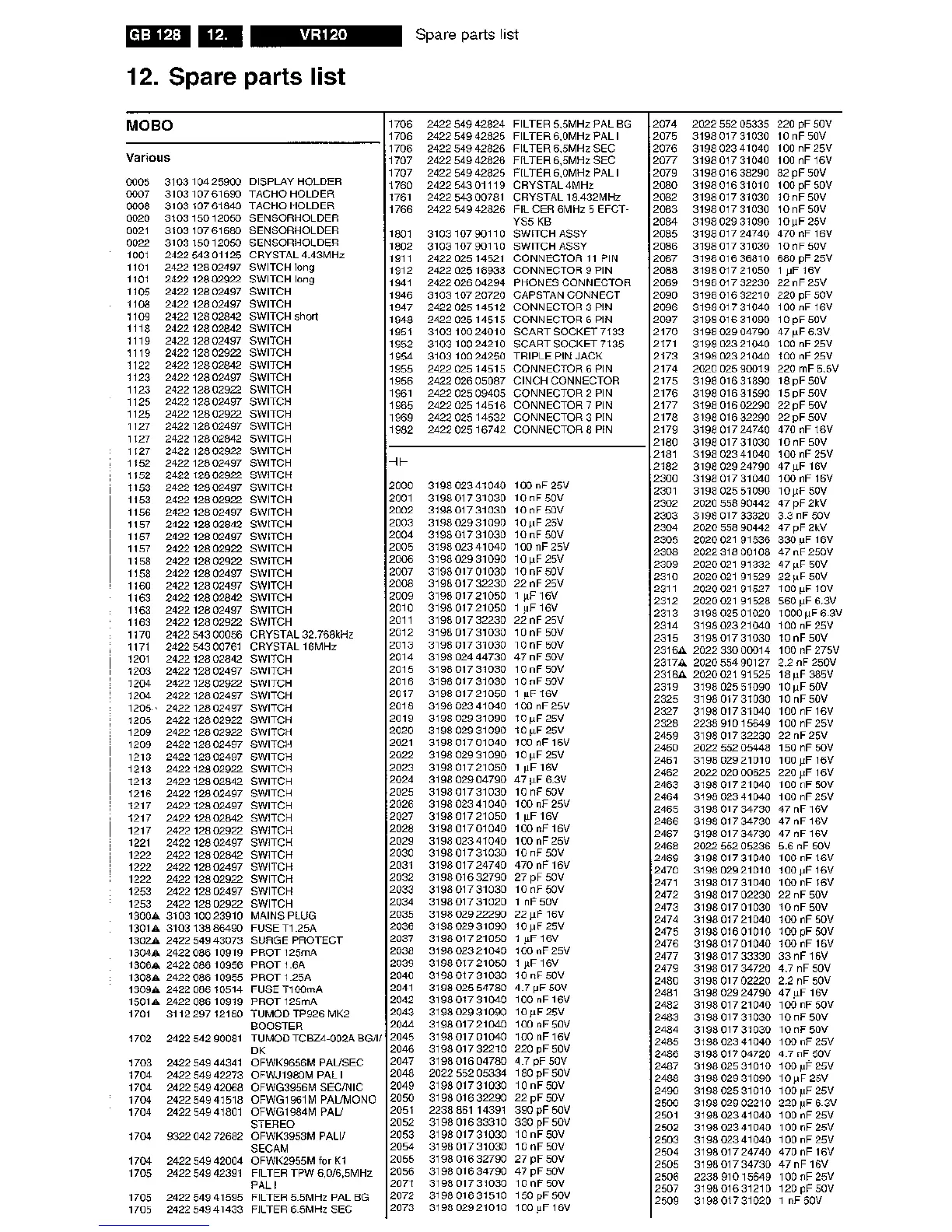 Philips VR120/-2 - Spare Parts List