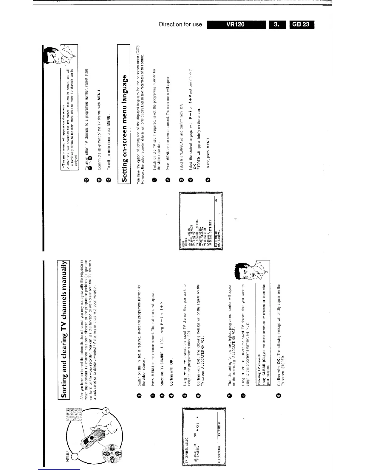 Philips VR120/-2 - Storing and Clearing TV Channels Manually; Setting On-Screen Menu Language