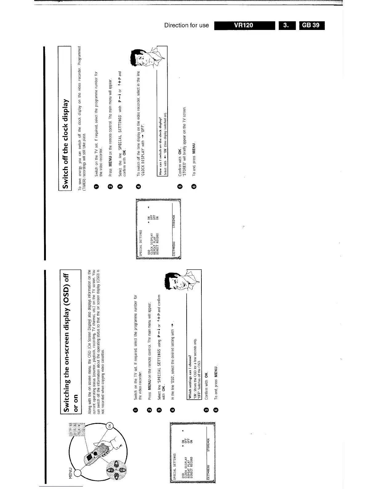 Philips VR120/-2 - Switching the On-Screen Display off or on; Switch off the Clock Display