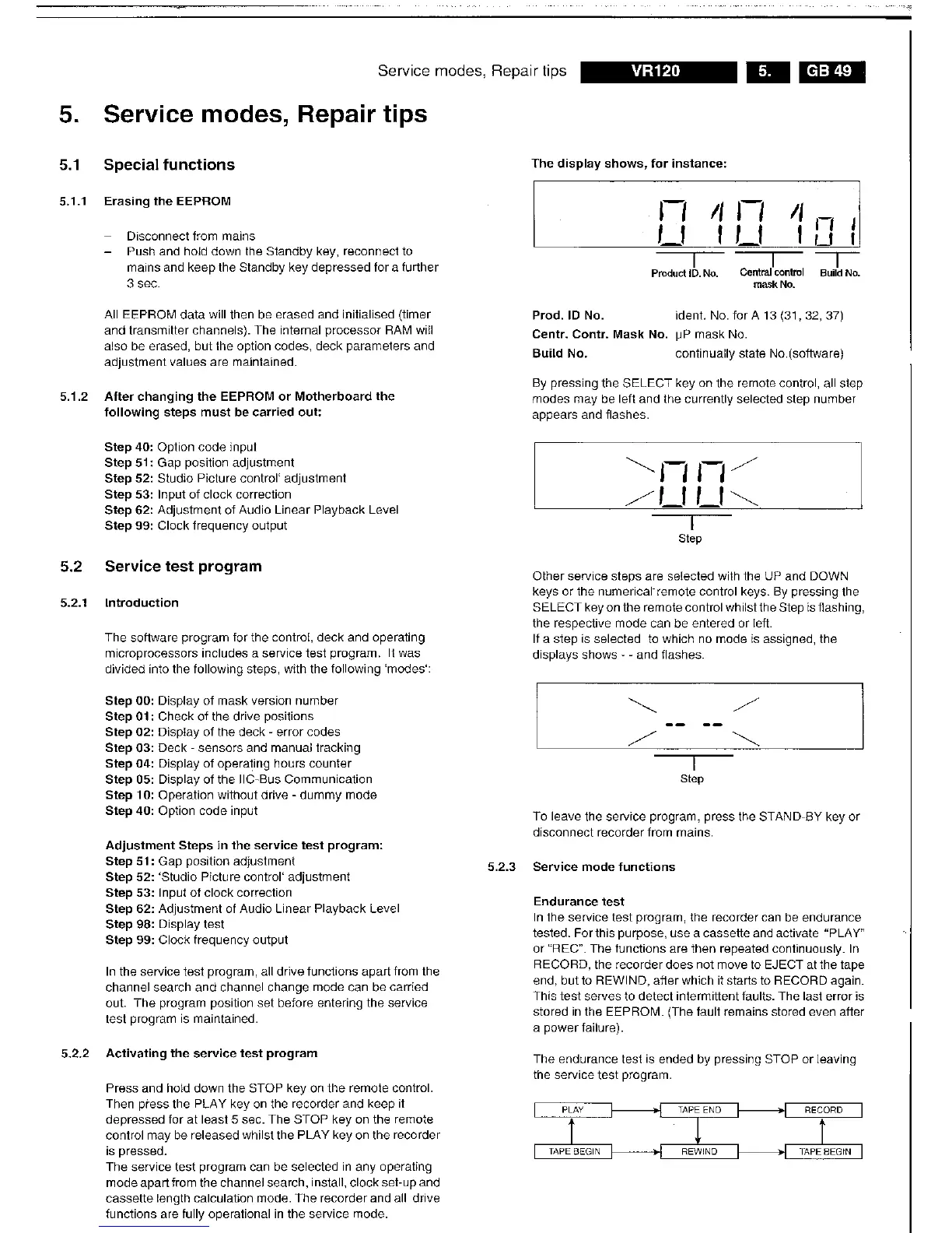 Philips VR120/-2 - Service Modes, Repair Tips; Special Functions; Erasing the EEPROM; Service Test Program