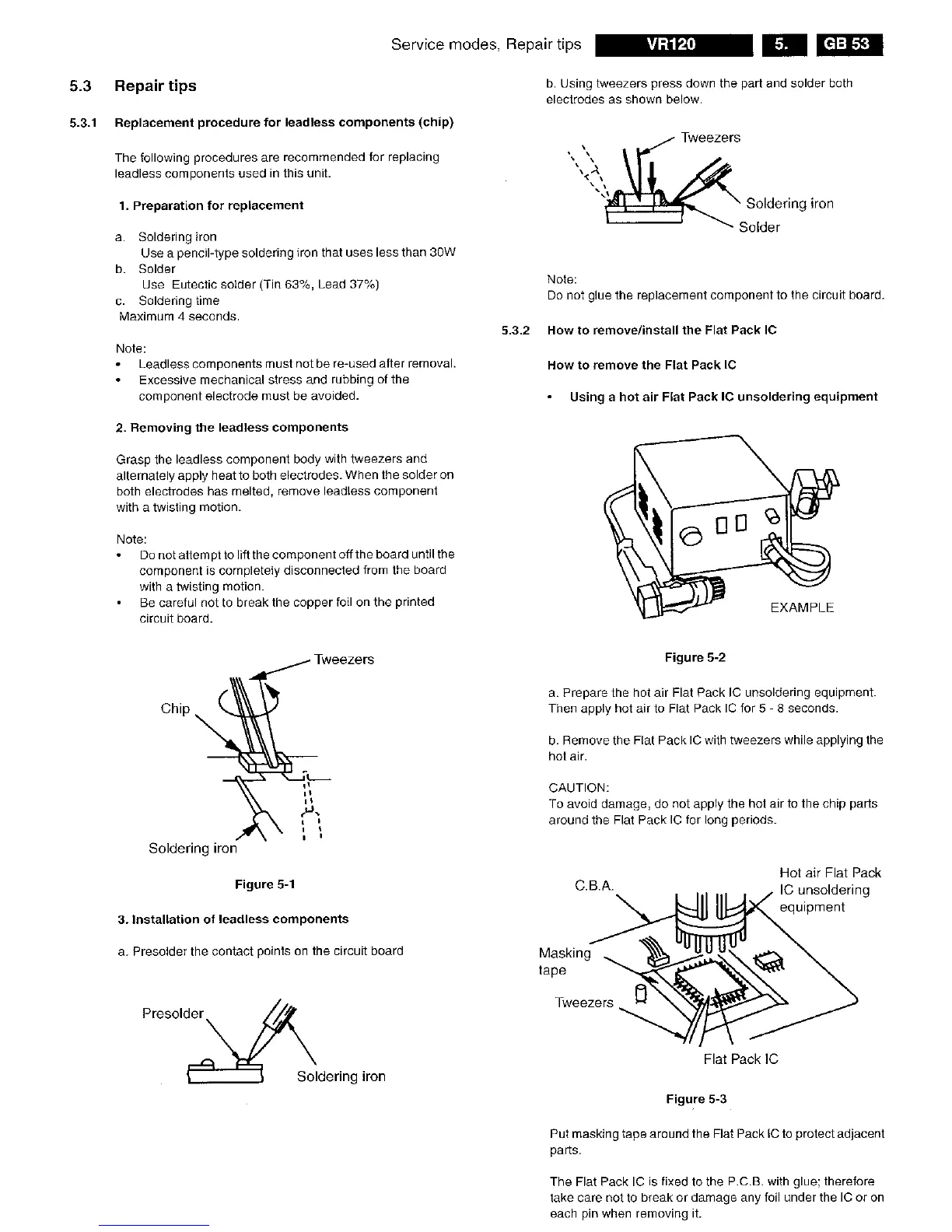 Philips VR120/-2 - Preparation for Replacement; Removing the Leadless Components; Installation of Leadless Components; How to Remove;Install the FLAT Pack IC