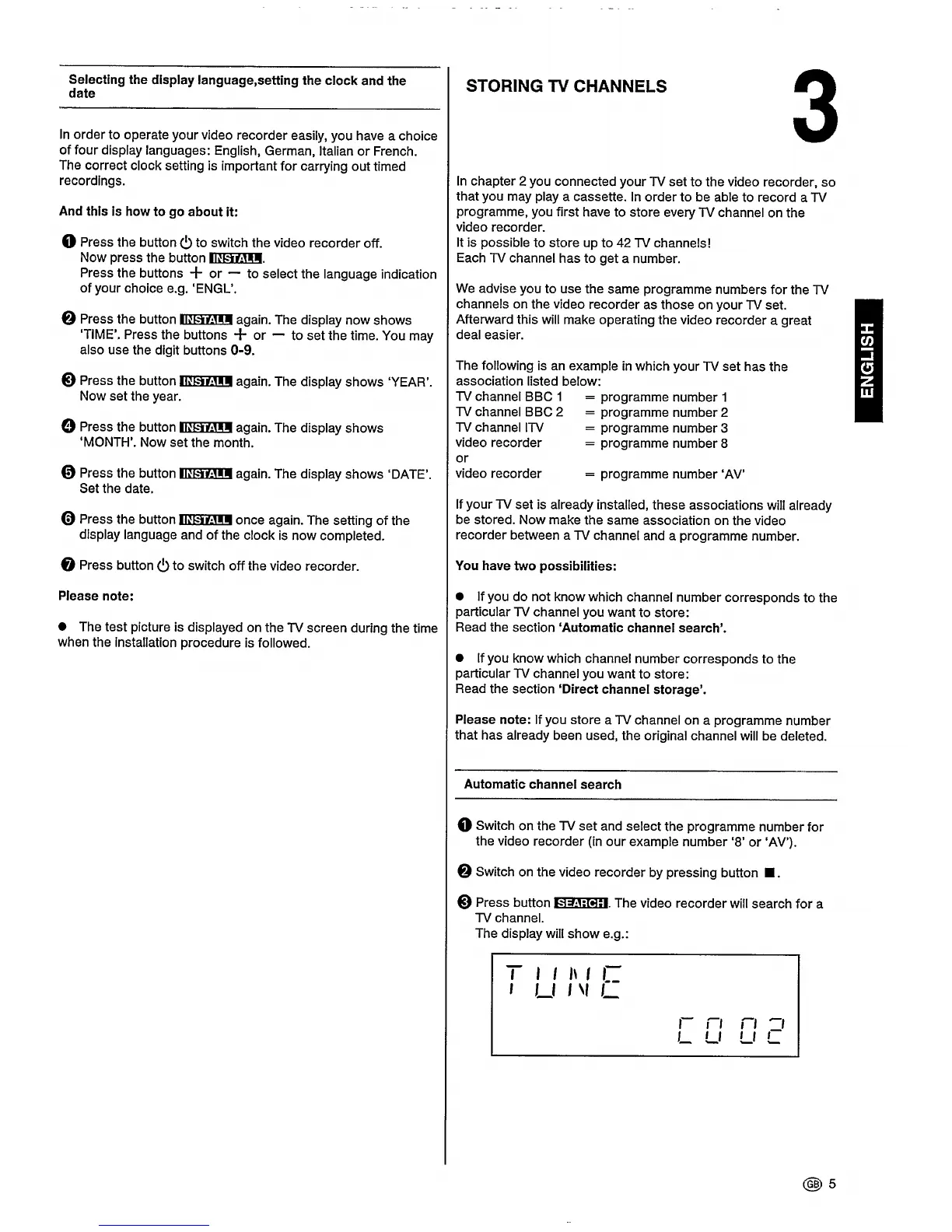 Philips VR201 - Setting Display Language and Clock; Storing TV Channels; Automatic Channel Search