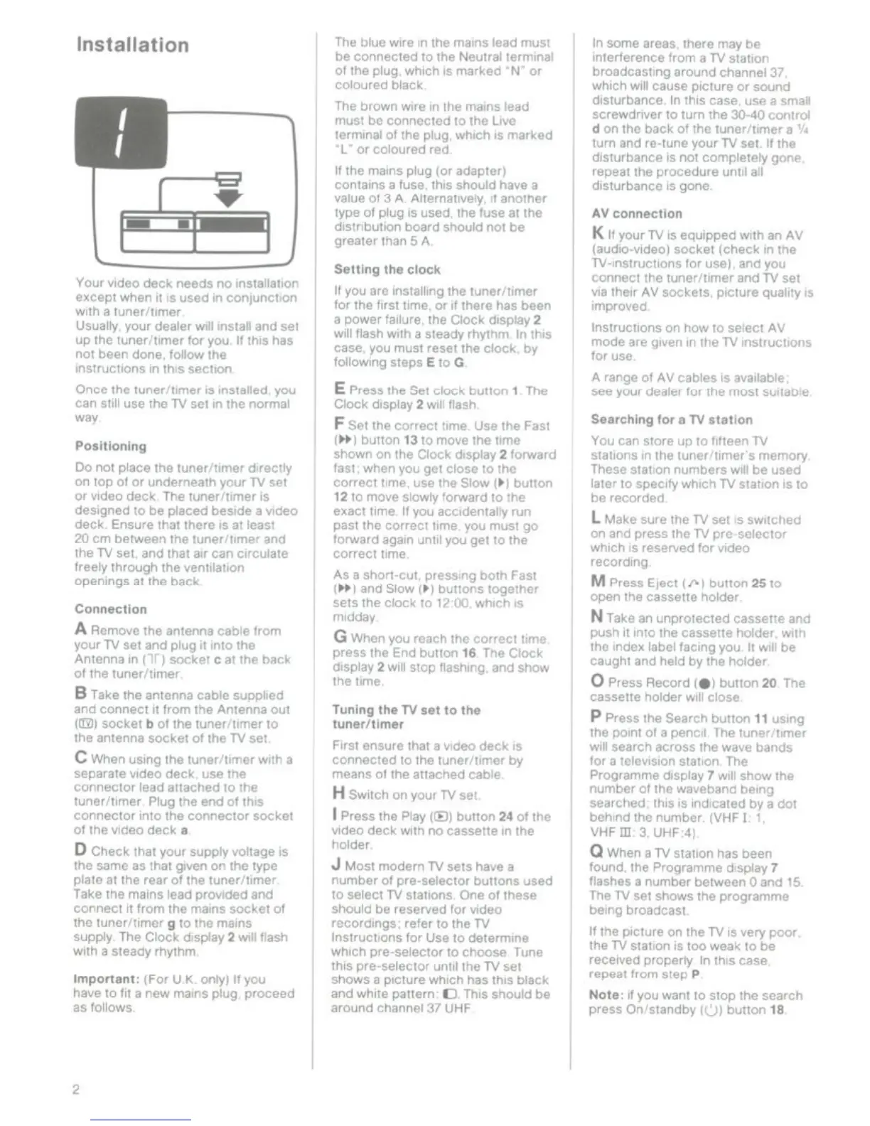 Philips VR2120 - Installation; Positioning; Connection; Setting the Clock