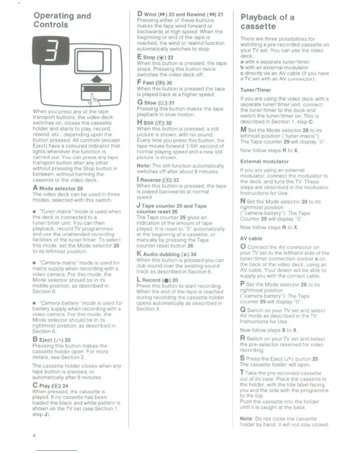 Philips VR2120 - Operating and Controls; Playback of a Cassette; External Modulator; AV Cable