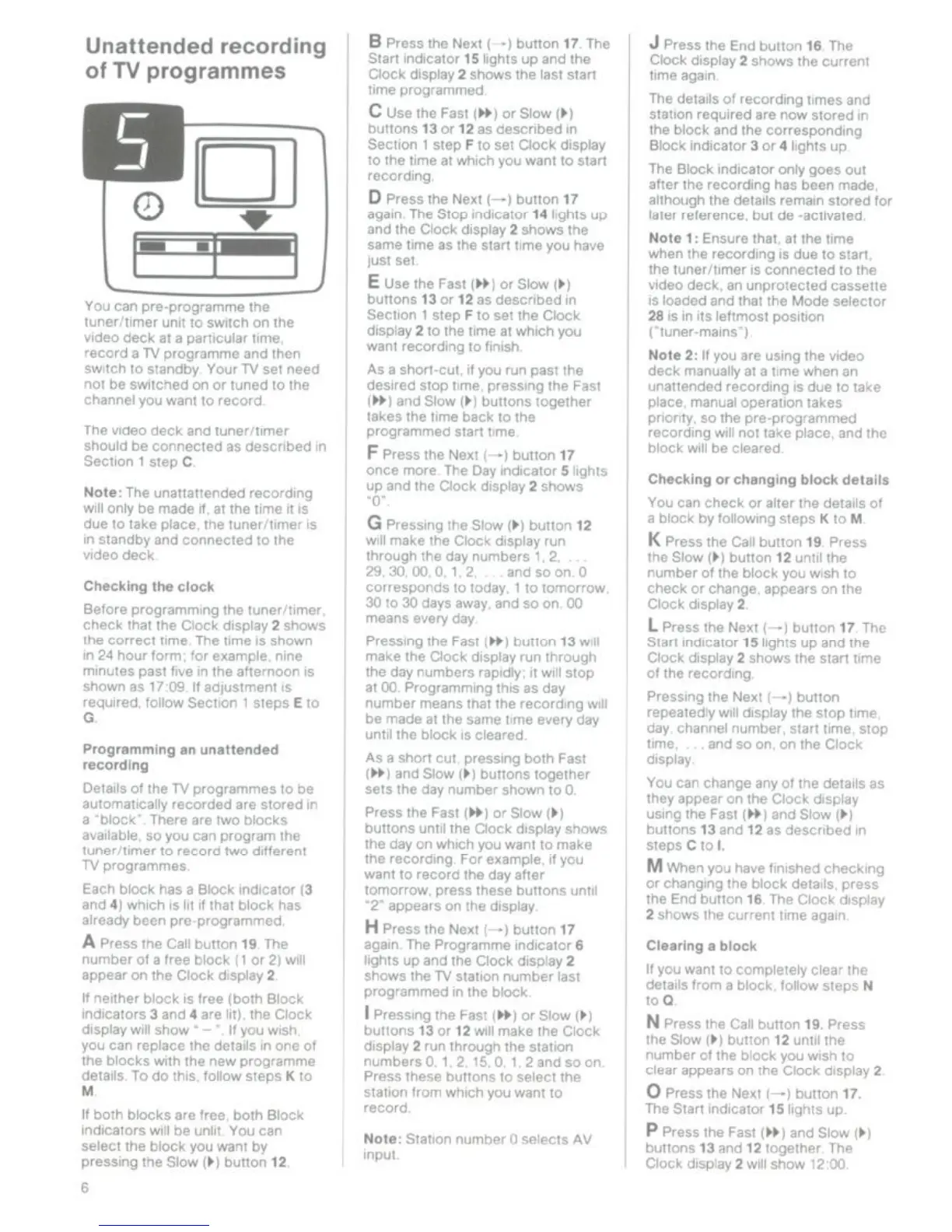 Philips VR2120 - Unattended Recording of TV Programmes; Checking the Clock; Programming an Unattended Recording; Checking or Changing Block Details