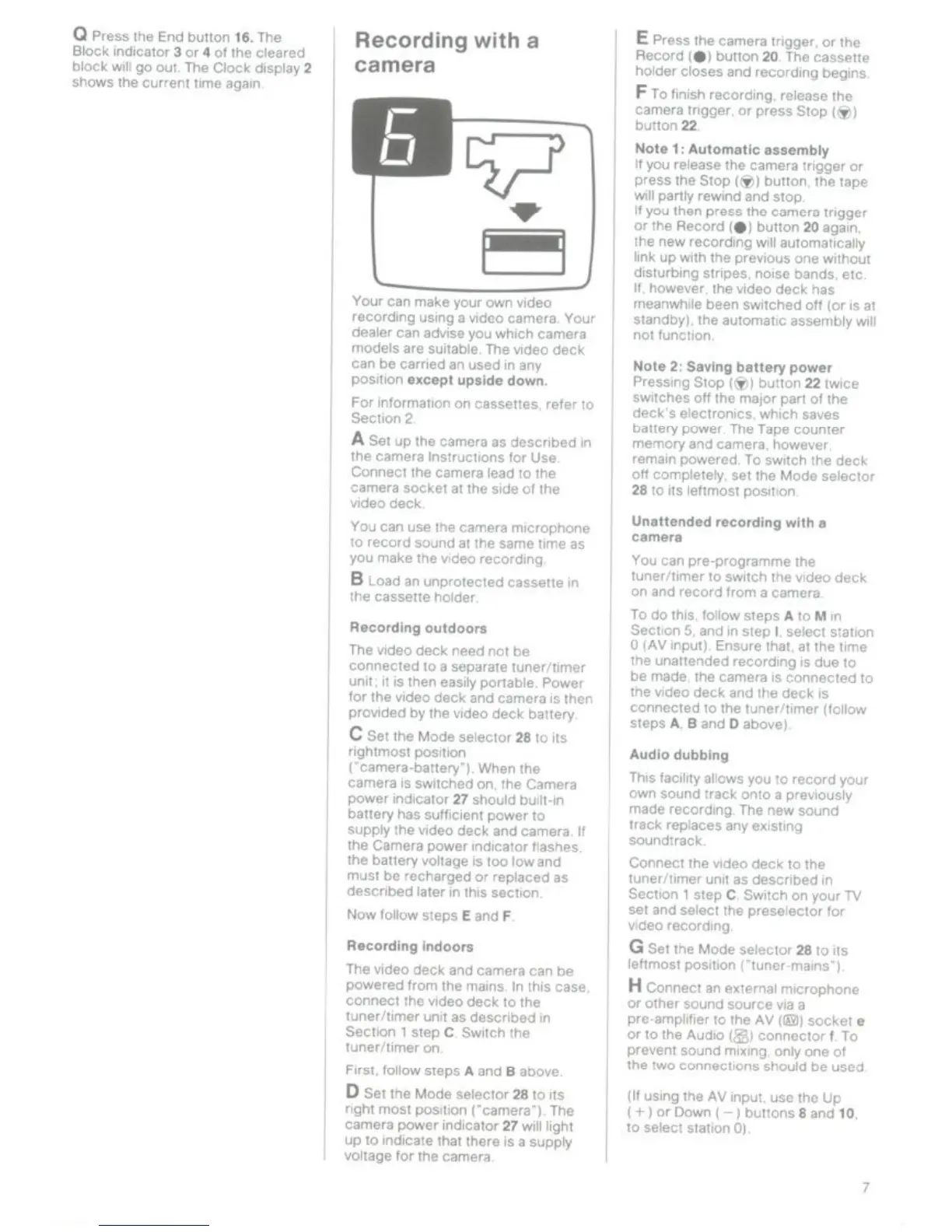 Philips VR2120 - Recording with a Camera; Recording Outdoors; Recording Indoors; Audio Dubbing