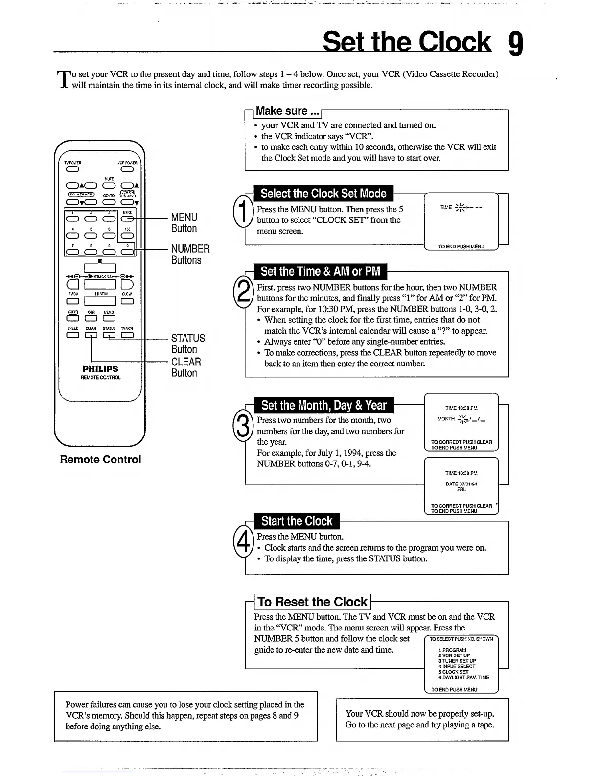 Philips VR254/50 - Set the Clock; To Reset the Clock