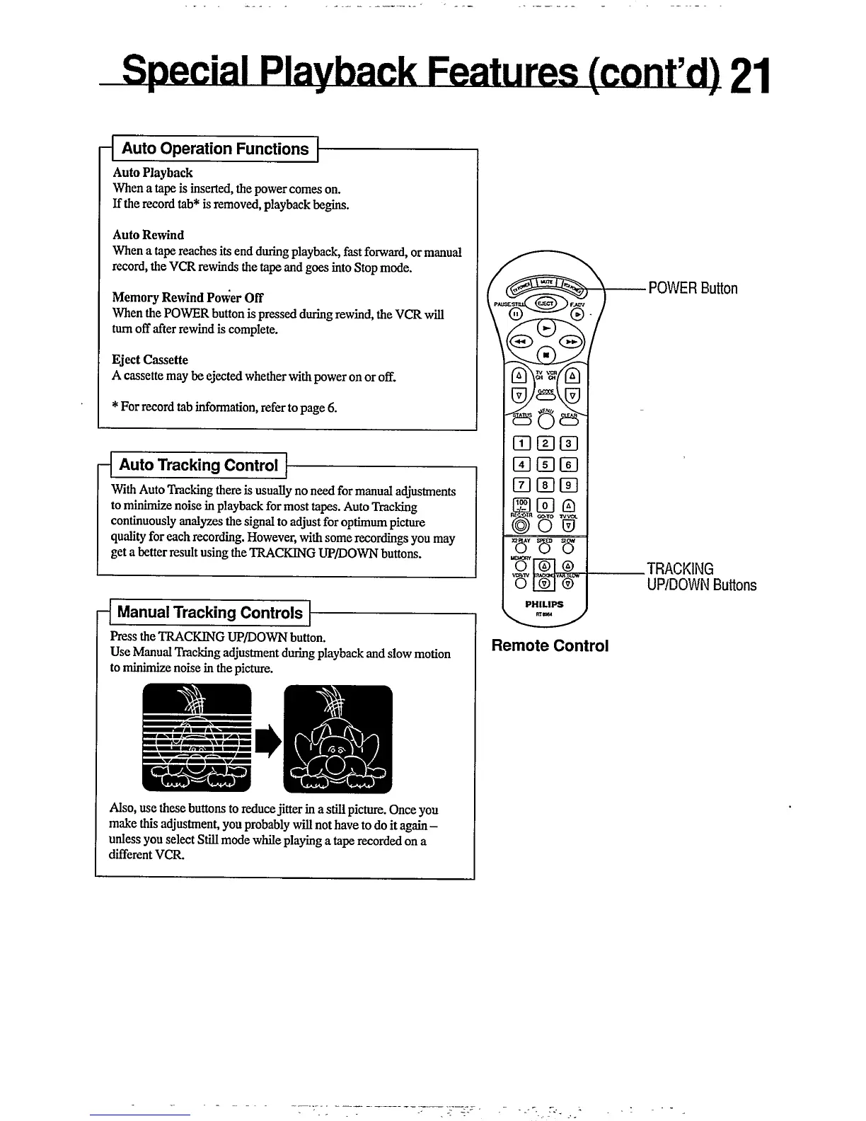 Philips VR457 - Auto Operation Functions; Auto Tracking Control; Manual Tracking Controls