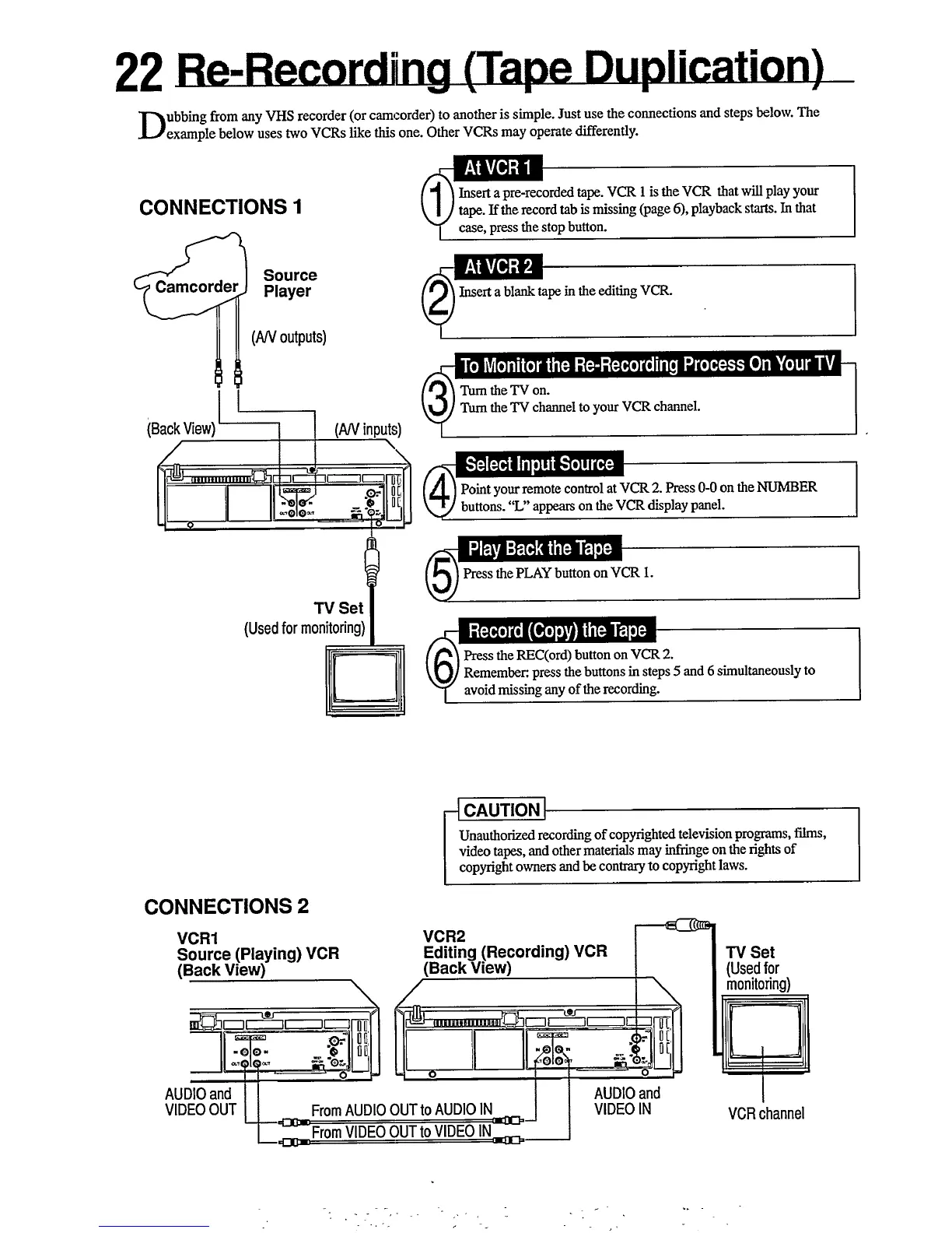 Philips VR457 - Re-Recording; Tape Duplication; Select Input Source; Play Back the Tape