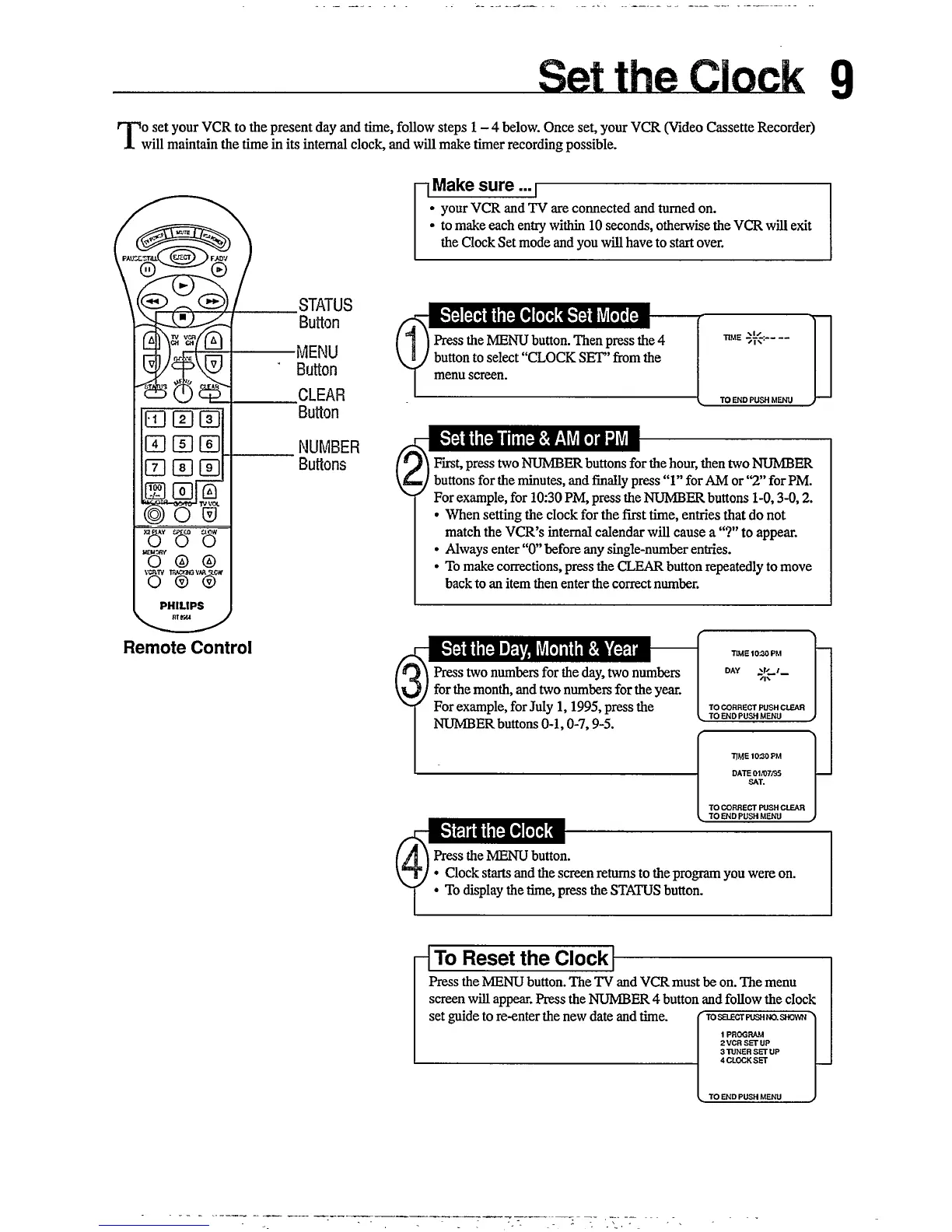 Philips VR457 - Set the Clock; Select the Clock Set Mode; Set the Time & am or PM; Start the Clock