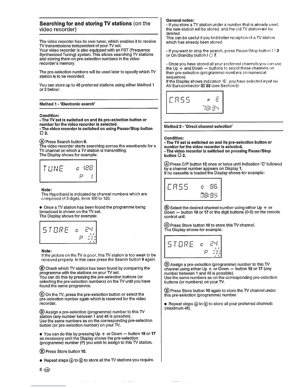 Philips VR6180 - Searching for and Storing TV Stations (on the Video Recorder); Electronic Search; Direct Channel Selection
