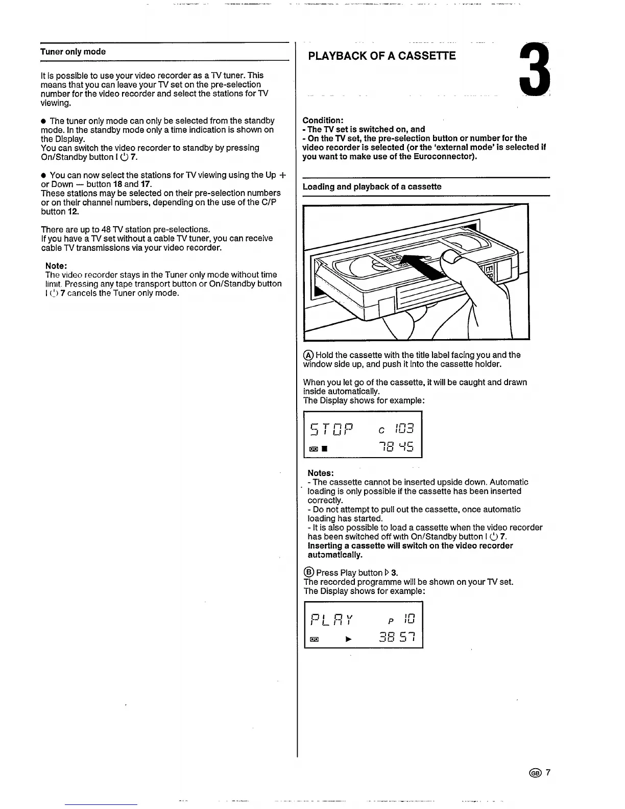 Philips VR6180 - Playback of a Cassette; Tuner Only Mode; Loading a Cassette
