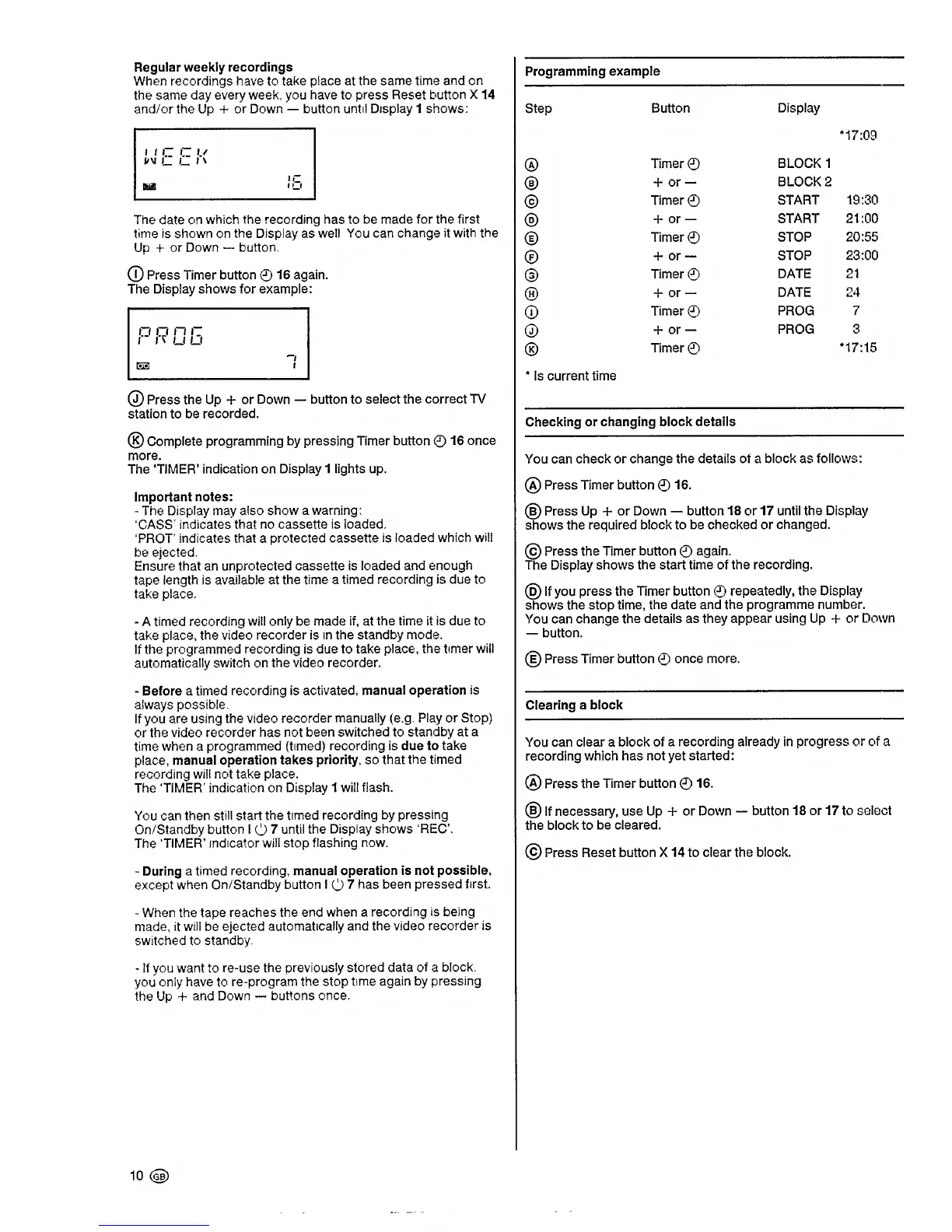 Philips VR6180 - Regular Weekly Recordings; Programming Example; Checking or Changing Block Details; Clearing a Block