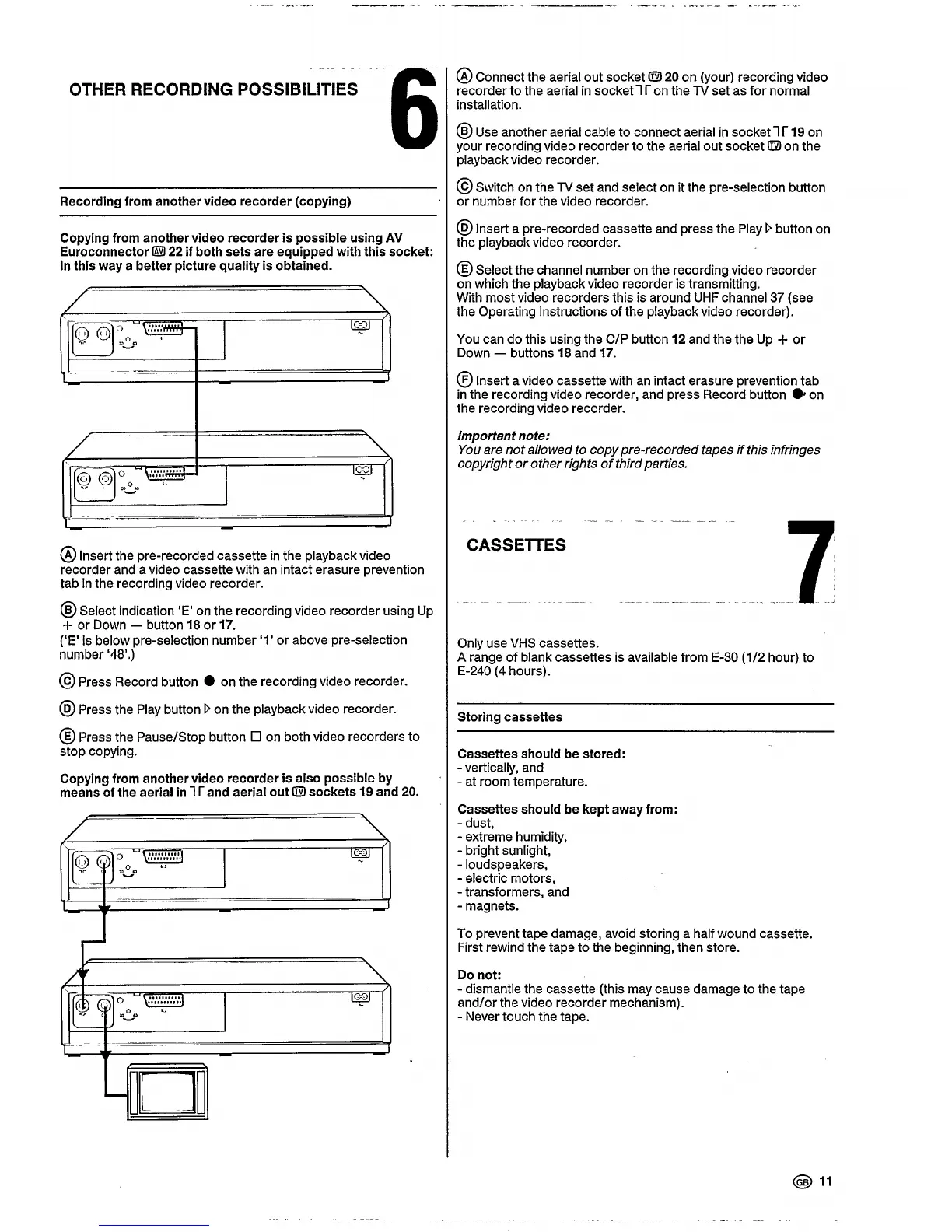 Philips VR6180 - Recording from Another Video Recorder (Copying); Storing Cassettes