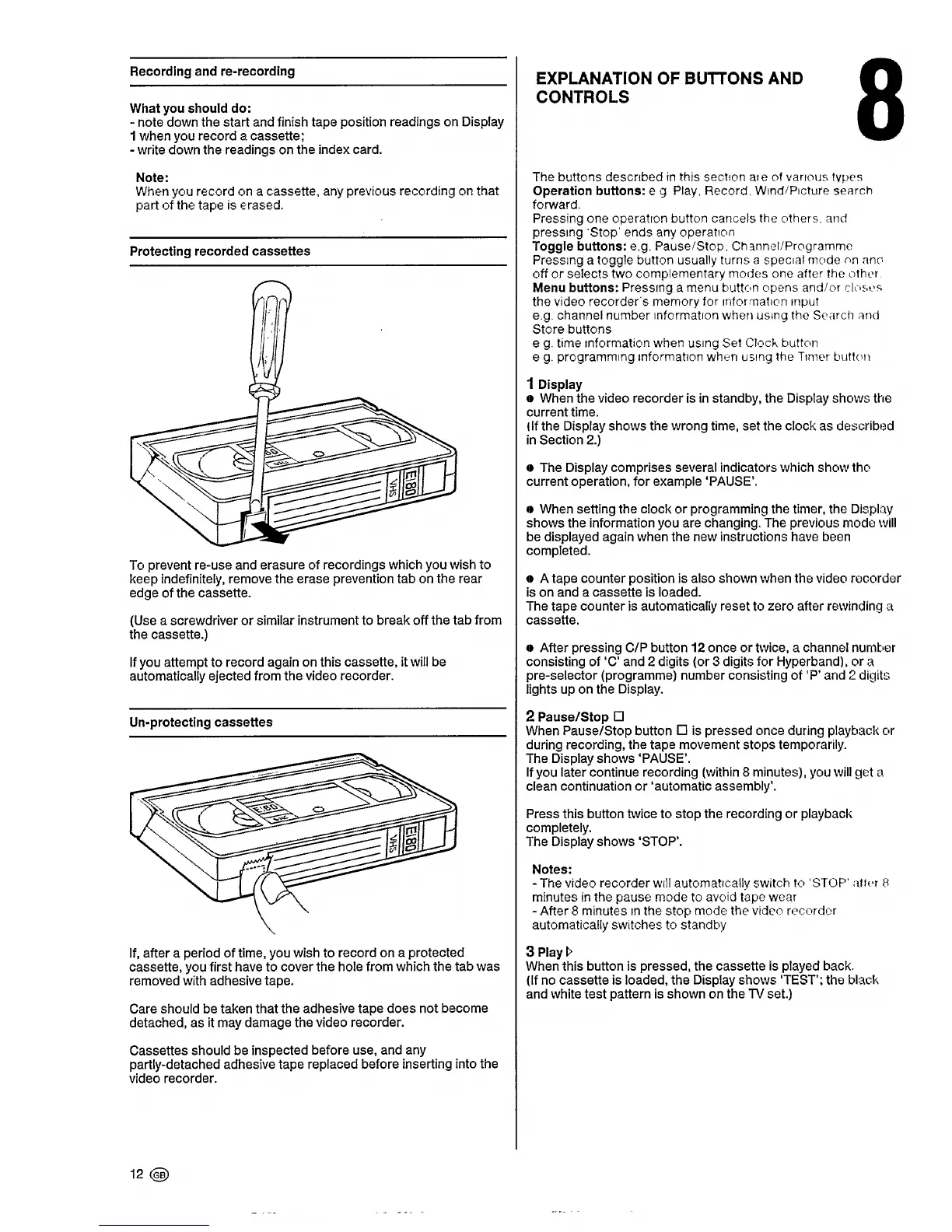 Philips VR6180 - Explanation of Buttons and Controls; Recording and Re-Recording; Protecting Recorded Cassettes; Un-Protecting Cassettes
