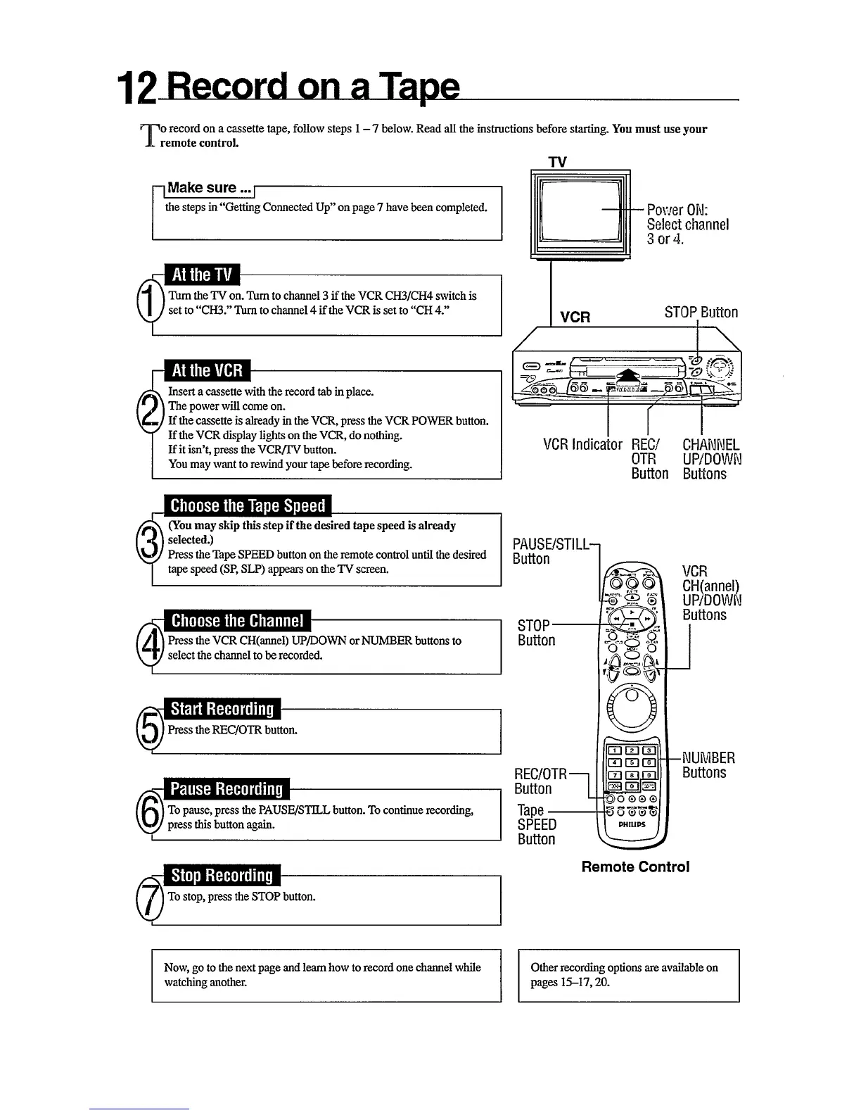 Philips VR756/50 - How to Record on a Tape; Recording a TV Program