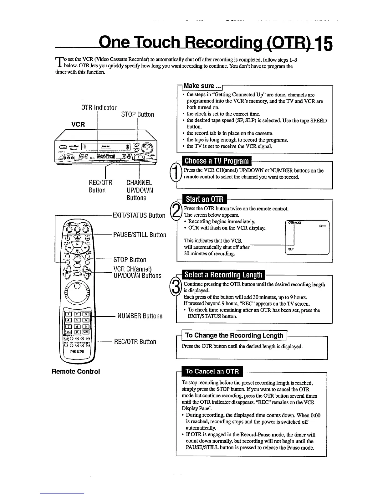 Philips VR756/50 - One Touch Recording (OTR); Quick Automatic Recording Setup