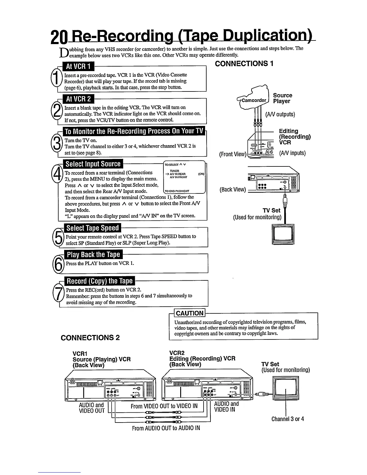 Philips VR756/50 - Re-Recording (Tape Duplication); Copying Tapes Between VCRs