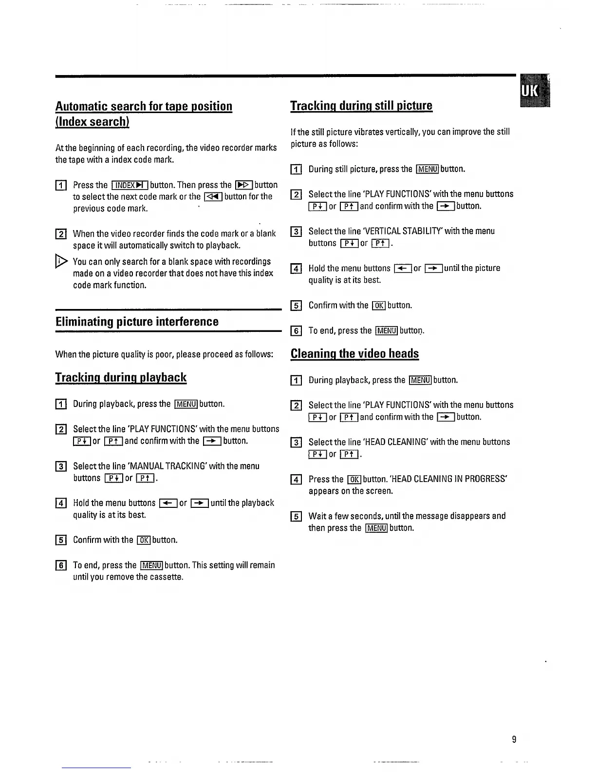 Philips VR800 - Eliminating Picture Interference; Tracking During Playback; Cleaning the Video Heads