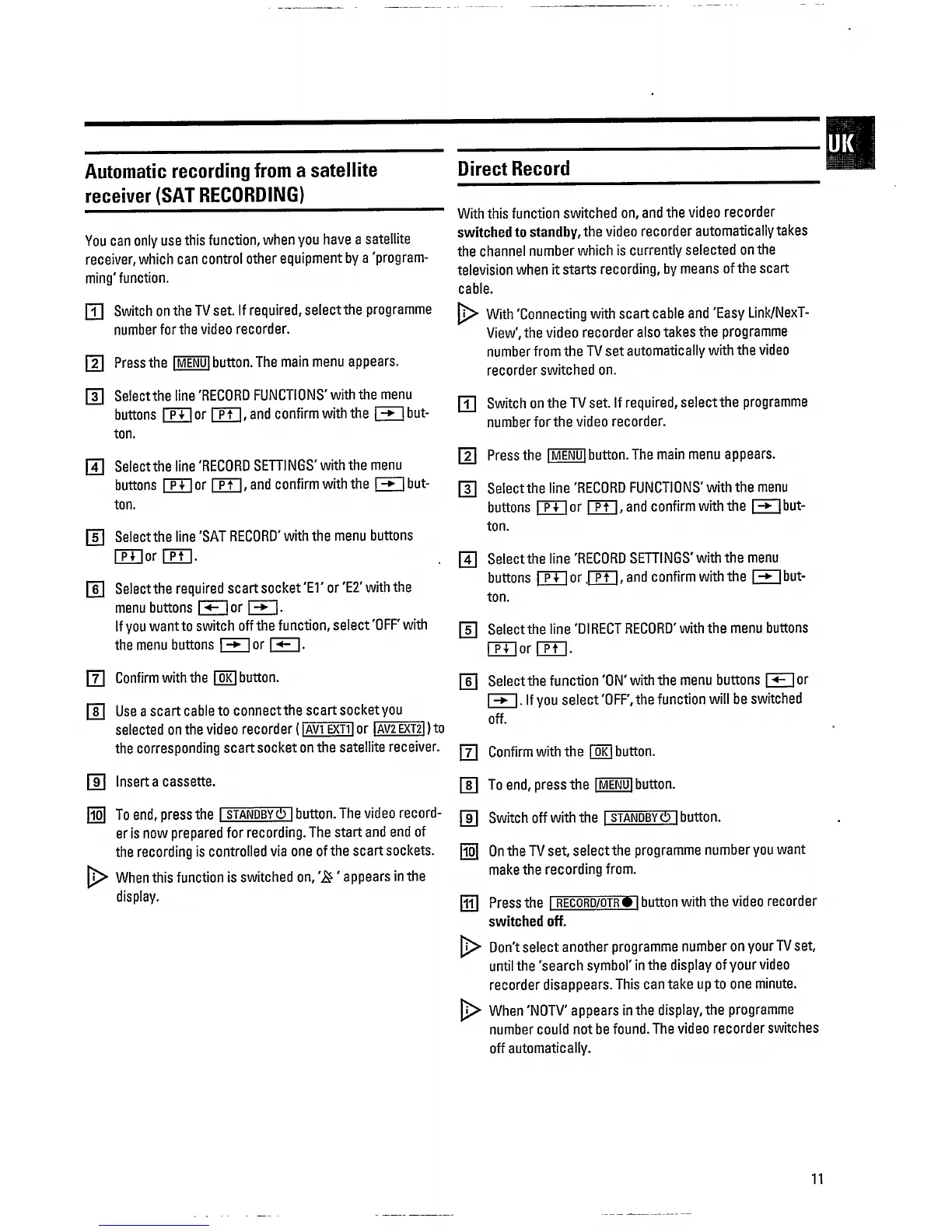 Philips VR800 - Automatic Recording from Satellite Receiver (SAT RECORDING); Direct Record