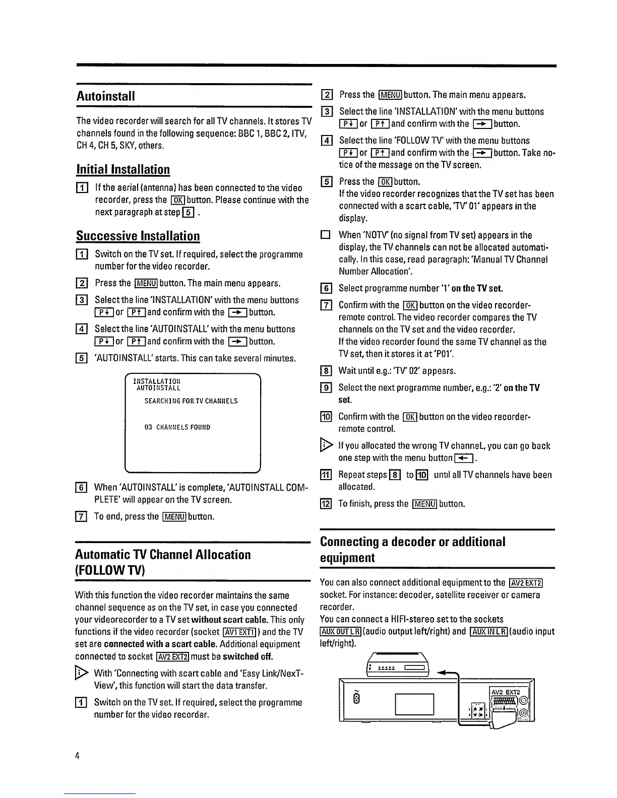 Philips VR800 - Autoinstall; Connecting Decoders and Additional Equipment