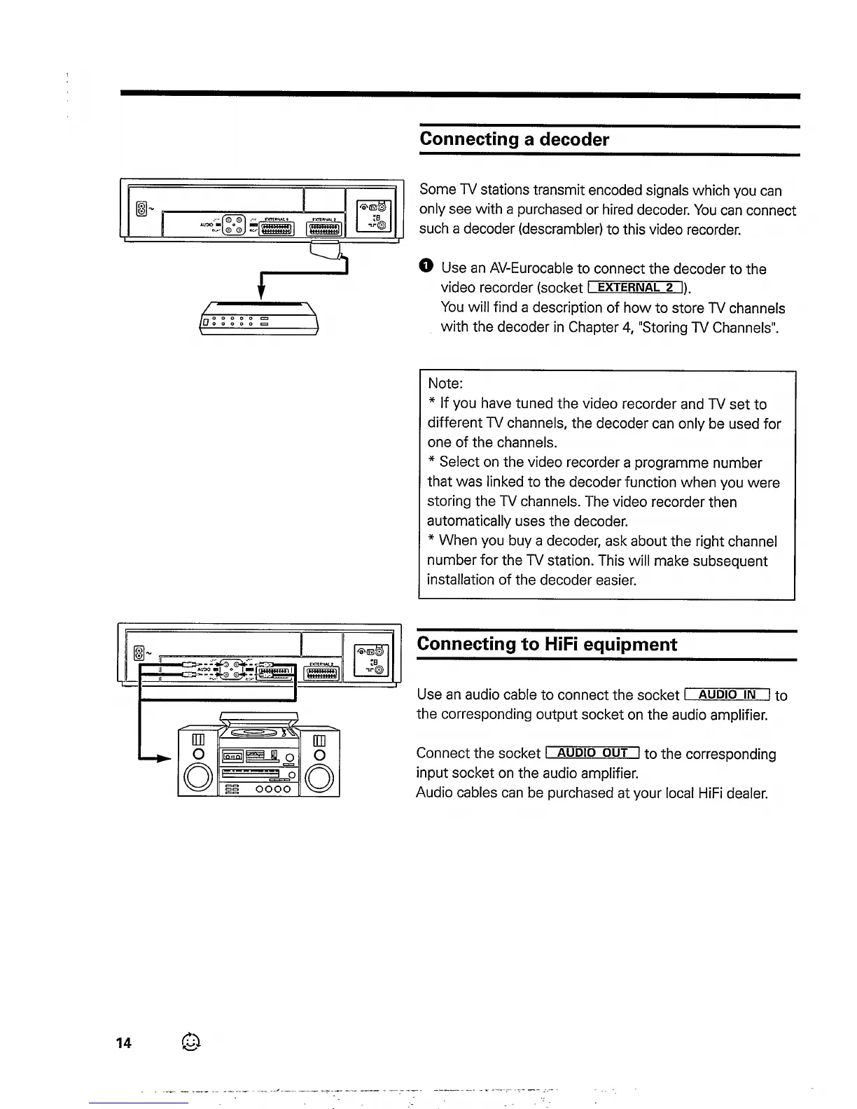 Philips VR833 - Connecting a Decoder; Connecting to Hifi Equipment